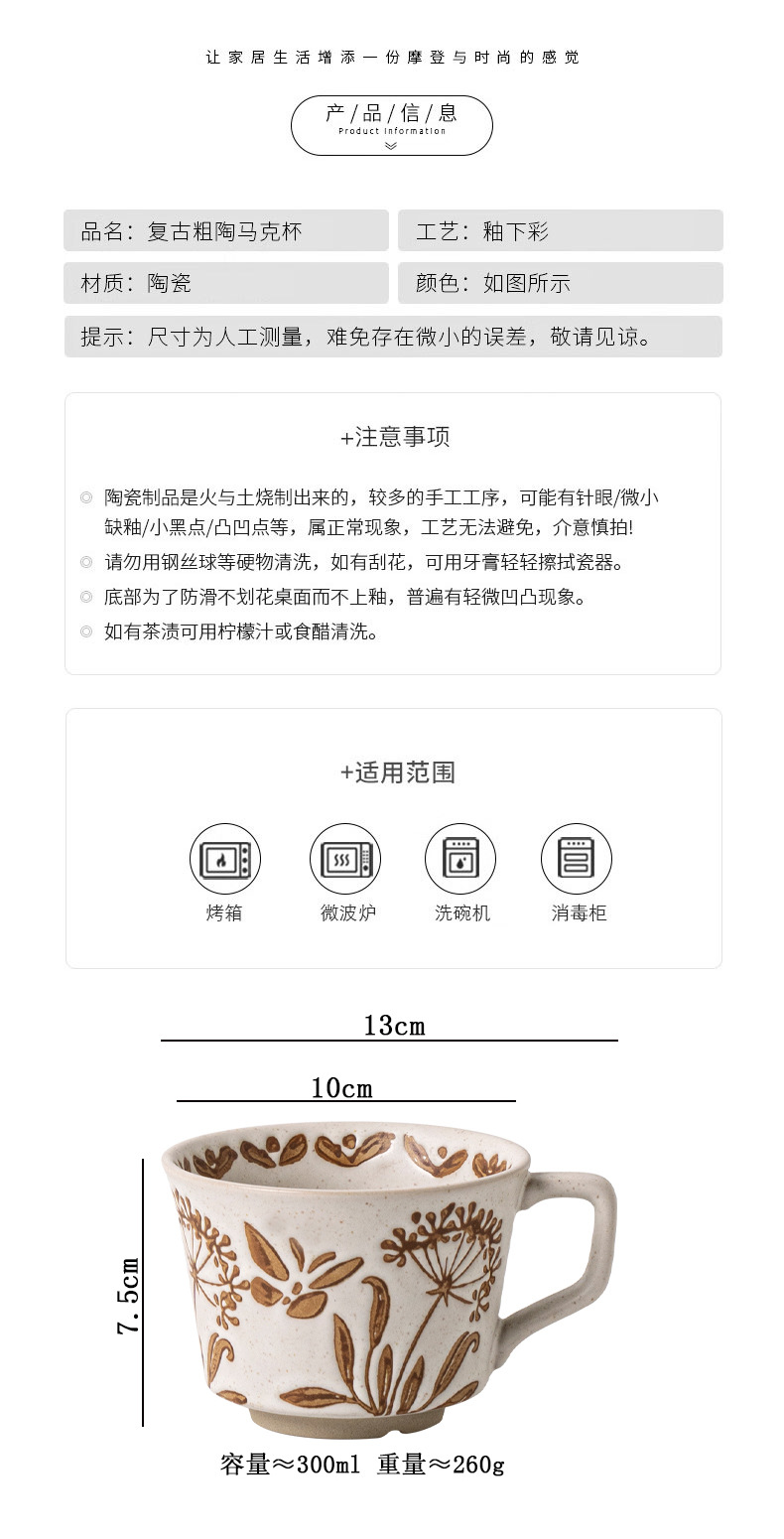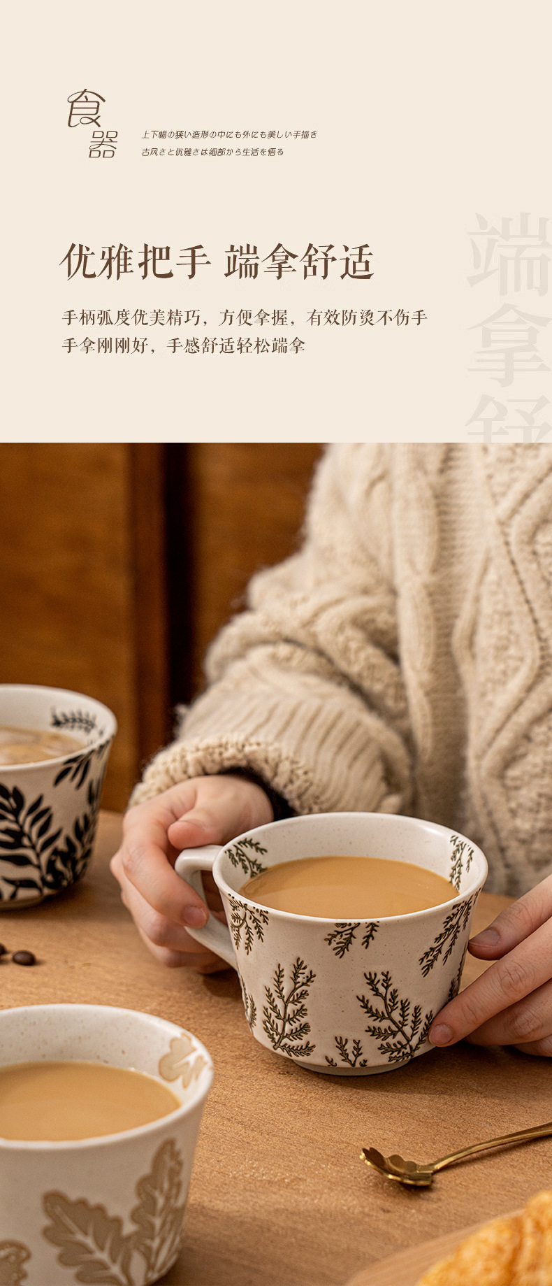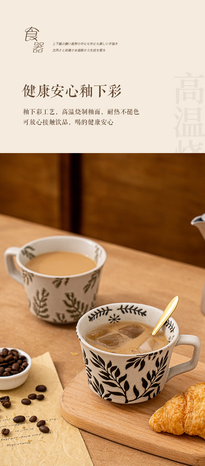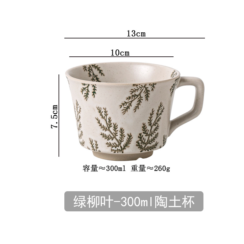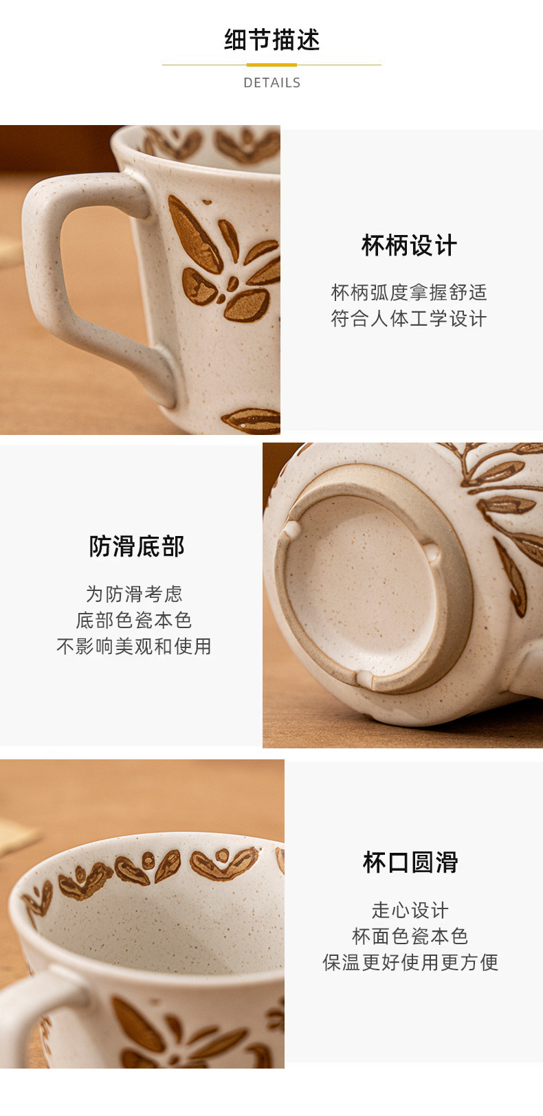 손으로 그린 거친 도자기 커피 컵, 복고풍 세라믹 머그잔, 프랑스 꽃 양각, 맞춤형 유약 컬러 워터 컵, 아침 식사 컵스토어 가기