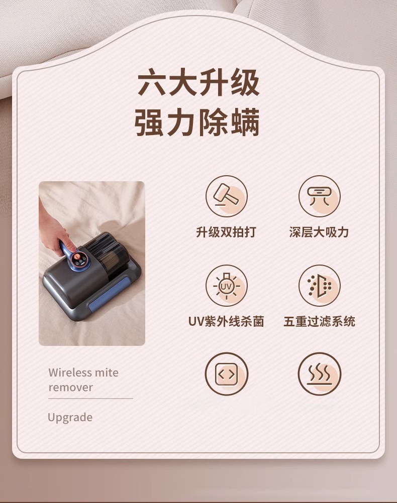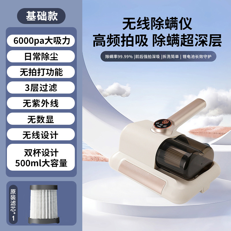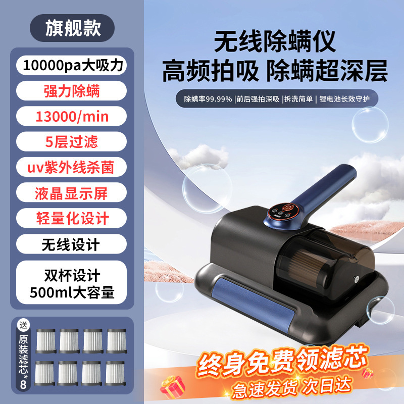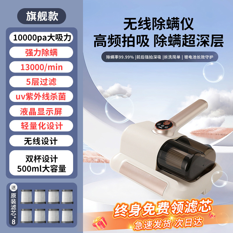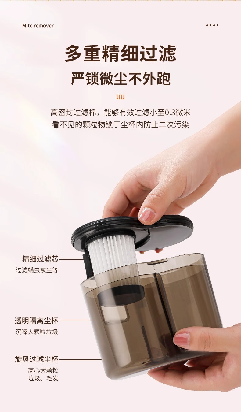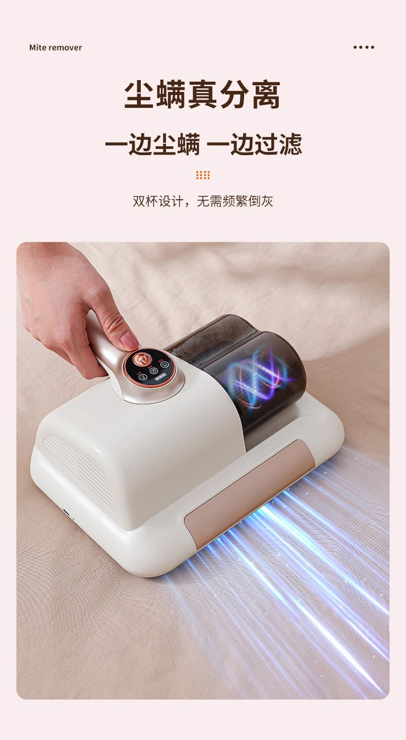 크로스보더 롤러 브러시 더블 컵 대용량 휴대용 무선 살균 진공 청소기 대형 흡입 UV 살균 및 진드기 제거 장치