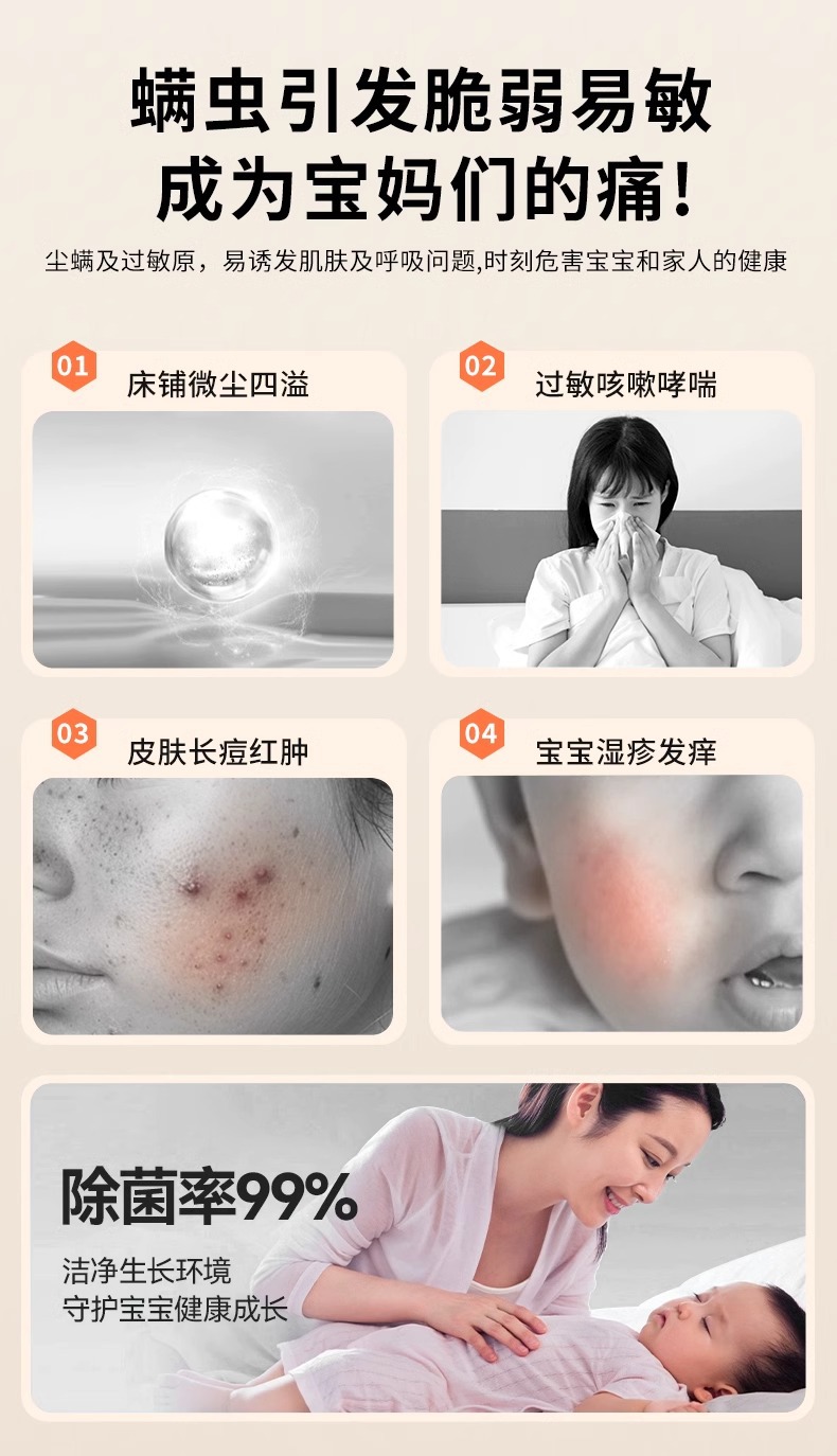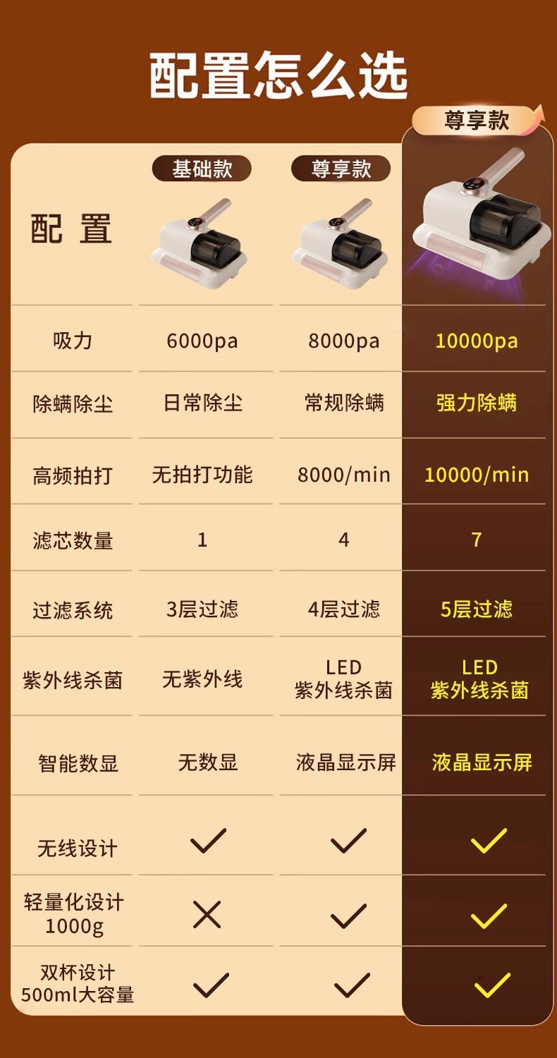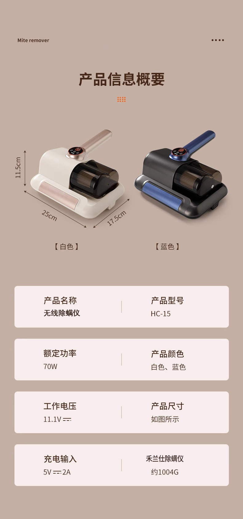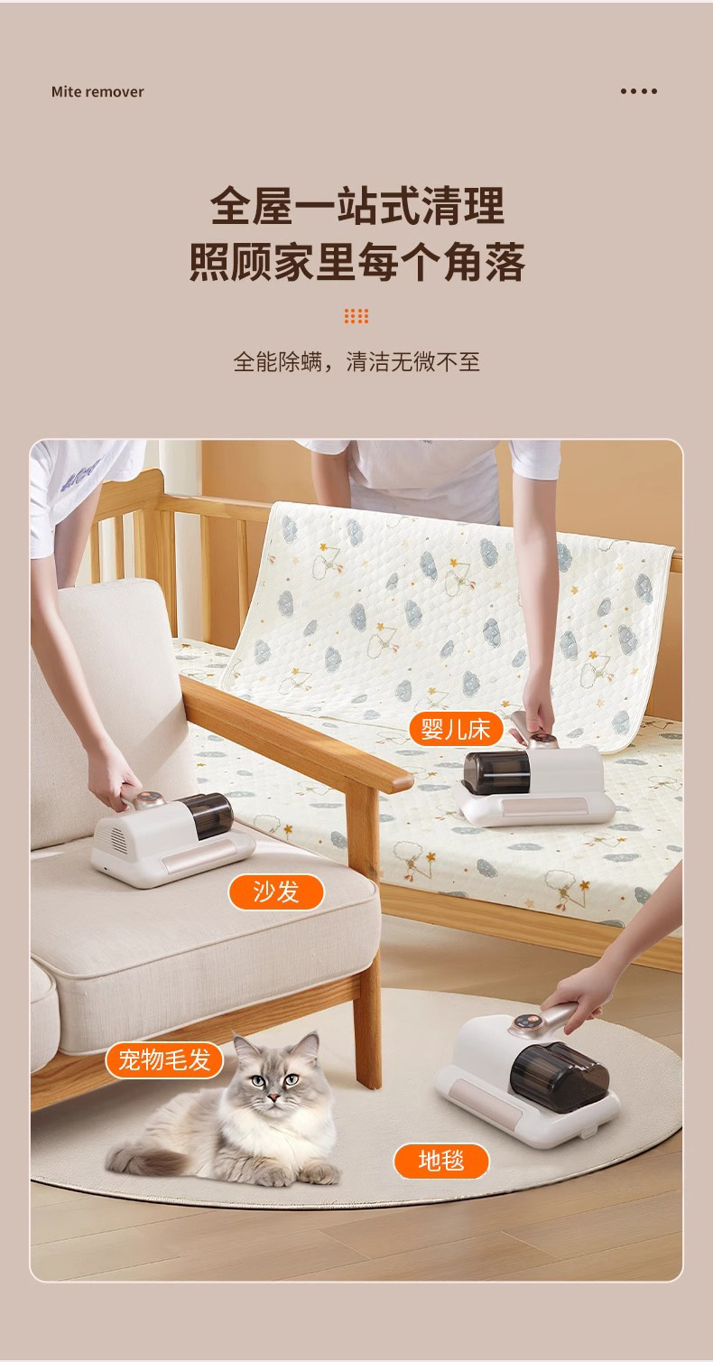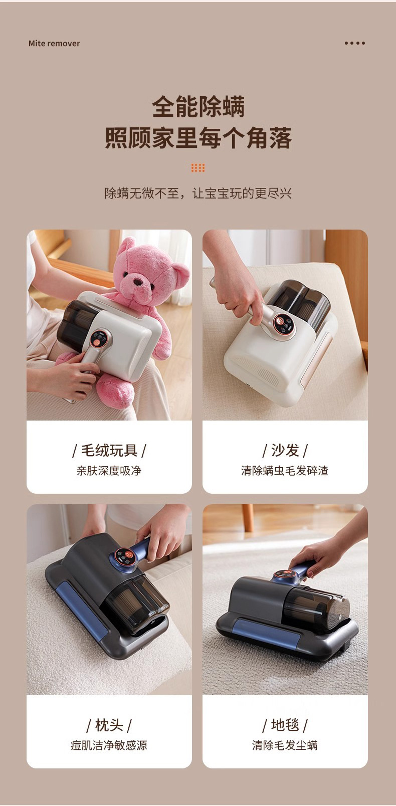 크로스보더 롤러 브러시 더블 컵 대용량 휴대용 무선 살균 진공 청소기 대형 흡입 UV 살균 및 진드기 제거 장치