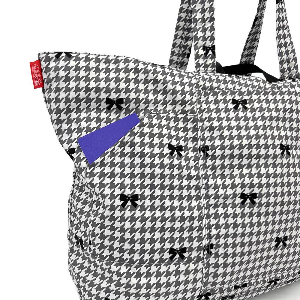 • kt 그레이 앤 화이트 체크 무늬 러기지백