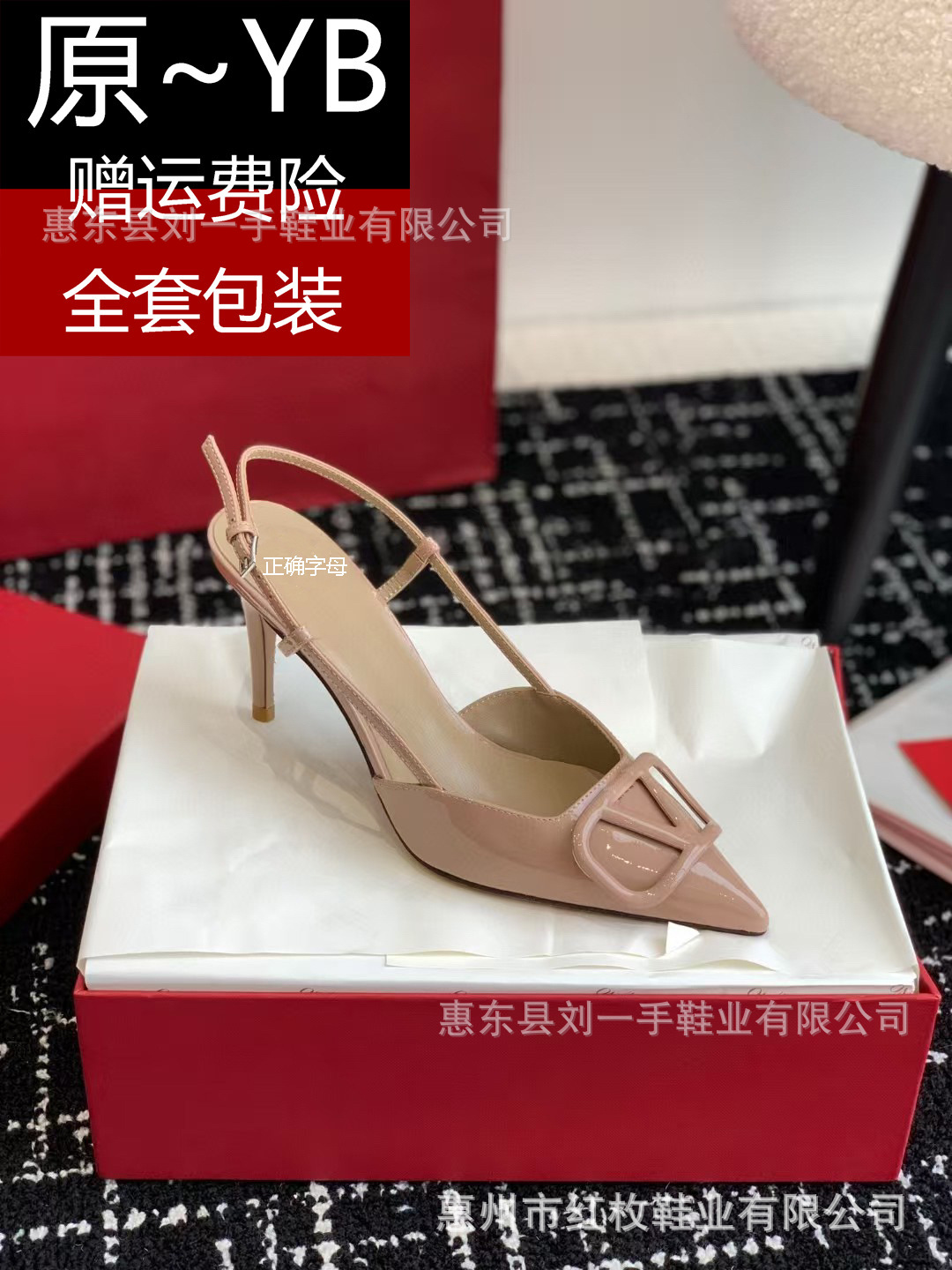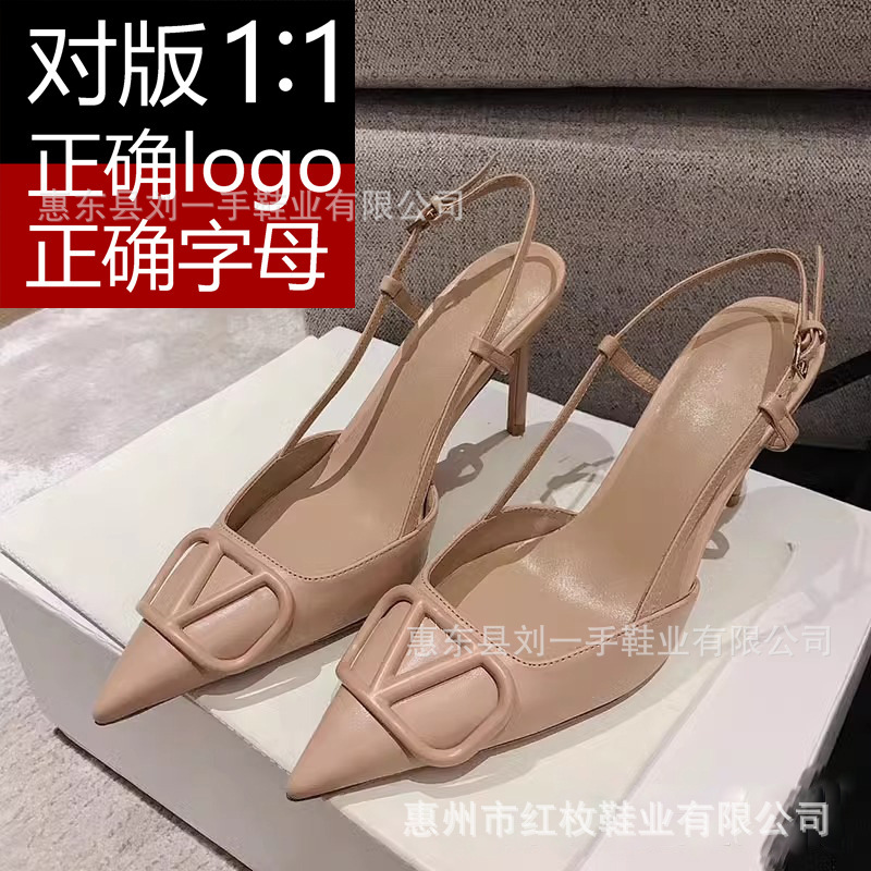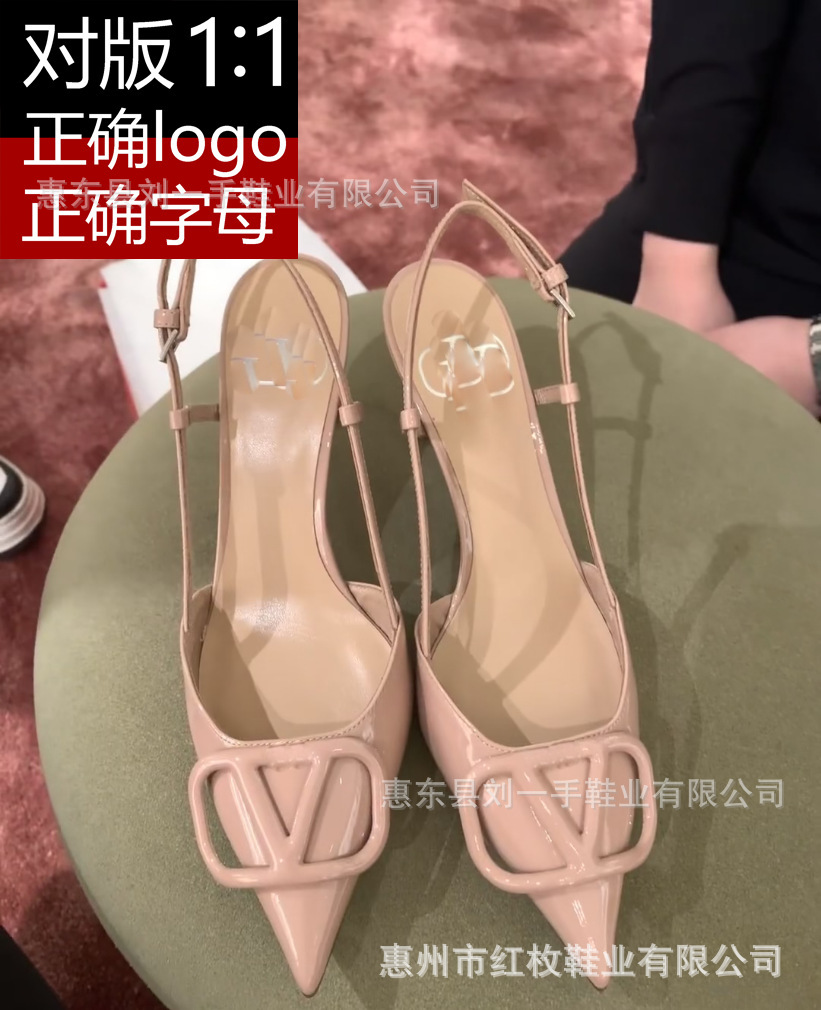 고급형 V 브랜드 누드 컬러 천연 가죽 하이힐 여성용 2025 여름 우아한 뾰족코 V 버클 하이힐 여성용 에나멜 가죽 오픈백스토어 가기
