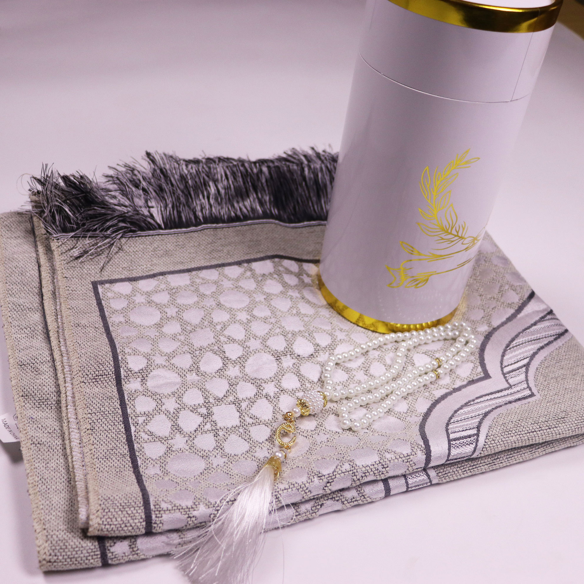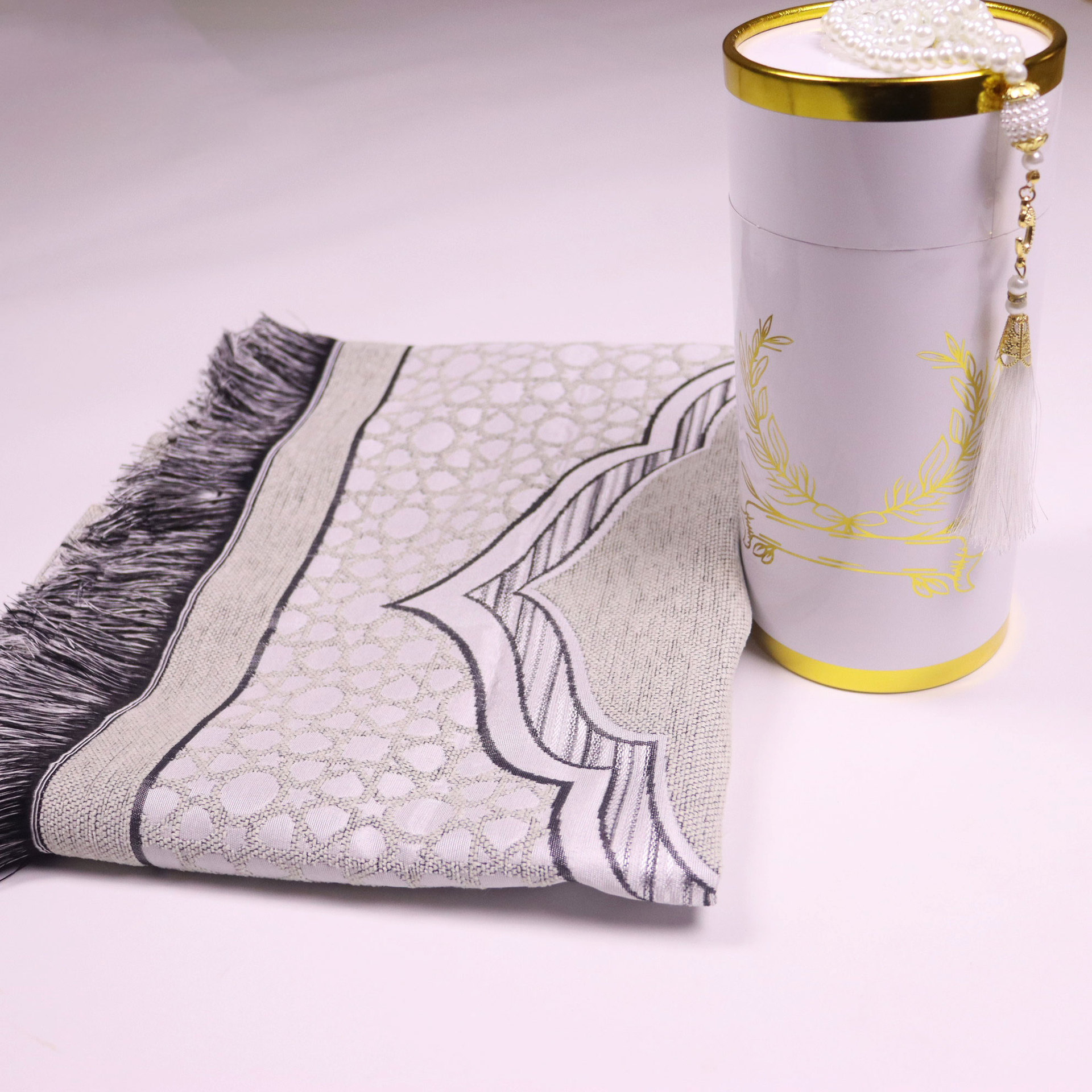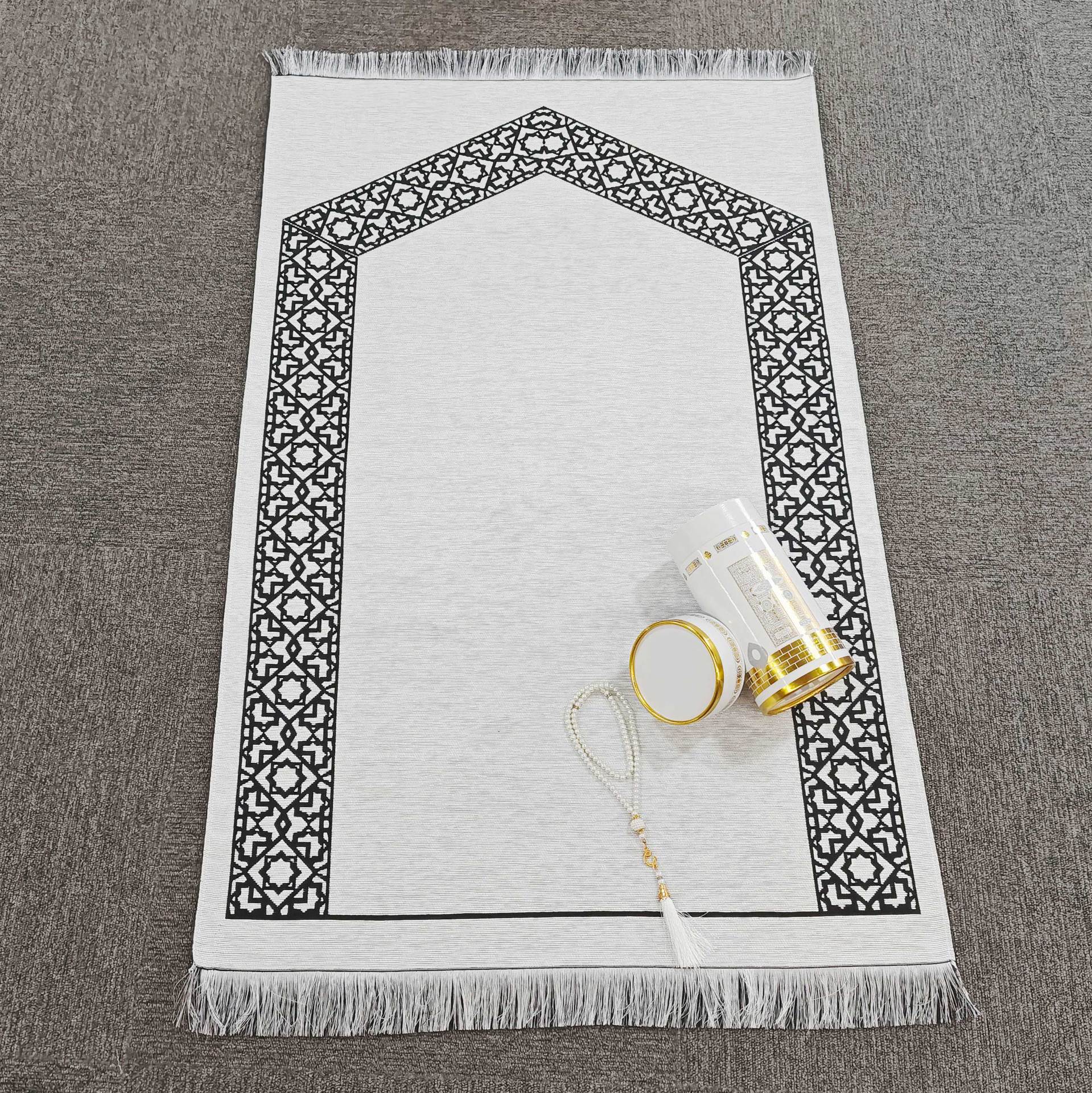 국경 간 인기 흰색 아랍 카펫 스타일 셔닐 직물 담요 선물 상자 담요 묵주 세트 중동스토어 가기