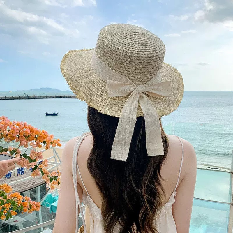 • 로우 엣지 보우 베이지 모자(블랙 벨트)