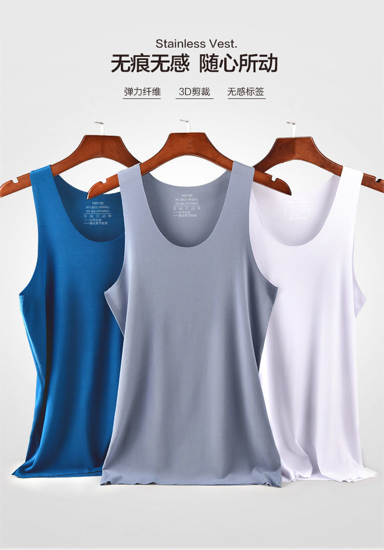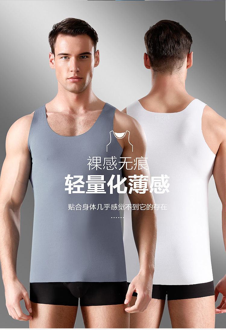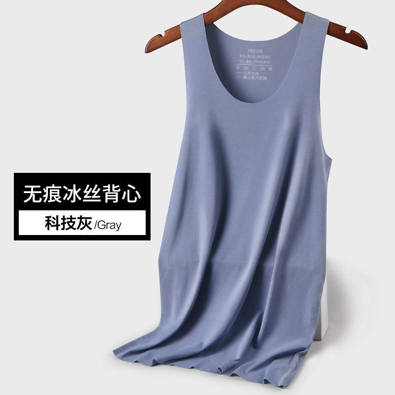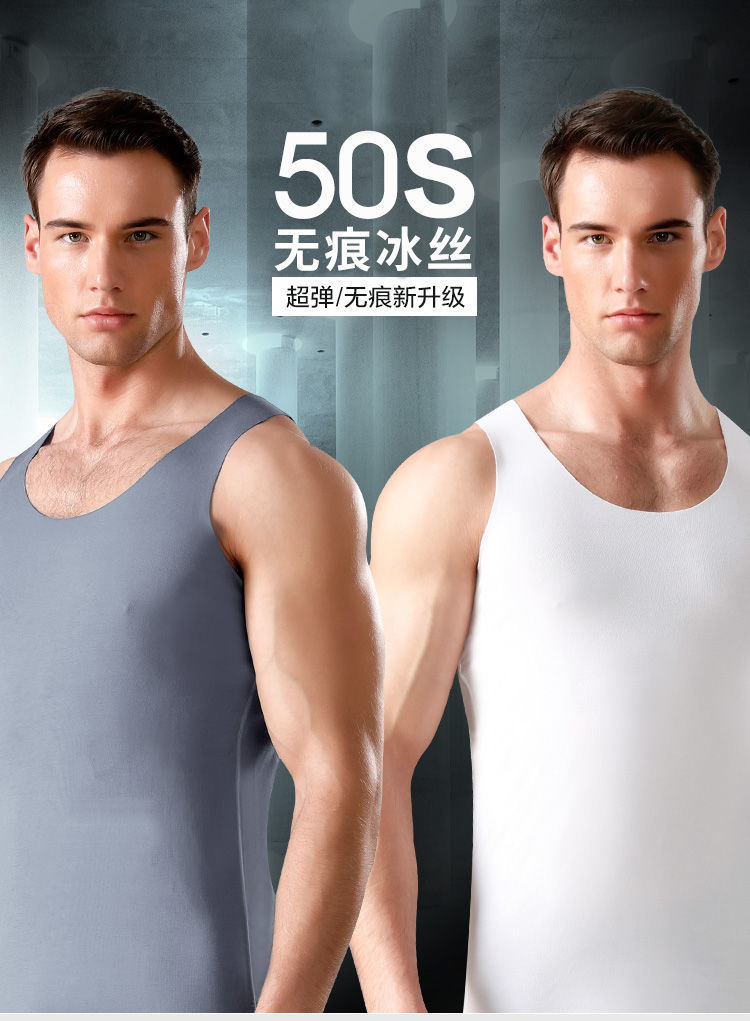 인기 신제품 남성용 아이스 실크 조끼 여름 스타일 라운드 넥 바닥 좁은 어깨 속옷 스포츠 얼음 느낌 시원하고 열사병 예방스토어 가기