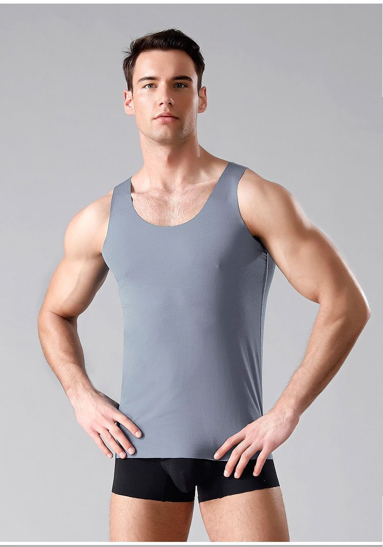 인기 신제품 남성용 아이스 실크 조끼 여름 스타일 라운드 넥 바닥 좁은 어깨 속옷 스포츠 얼음 느낌 시원하고 열사병 예방
