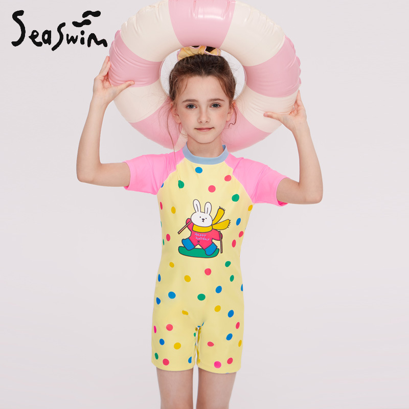새로운 여자 수영복 원피스 복서 반팔 어린이 전문 훈련 수영복 소녀를위한 세련된 휴가 수영복스토어 가기