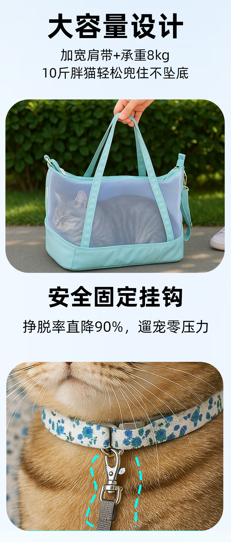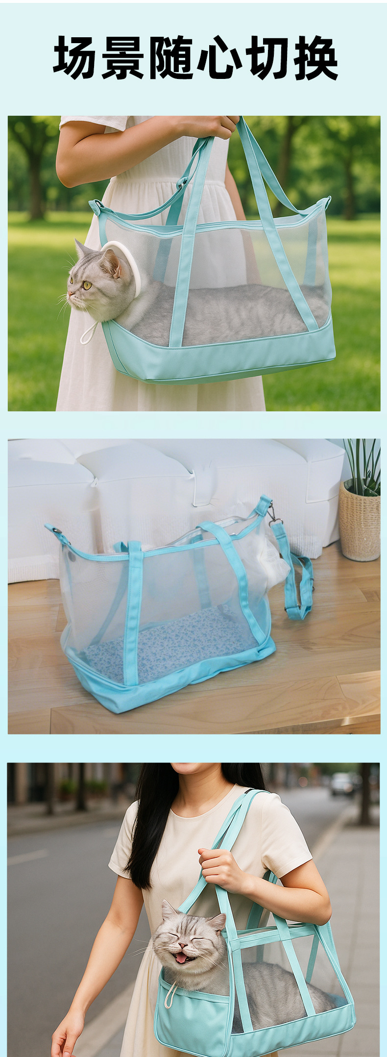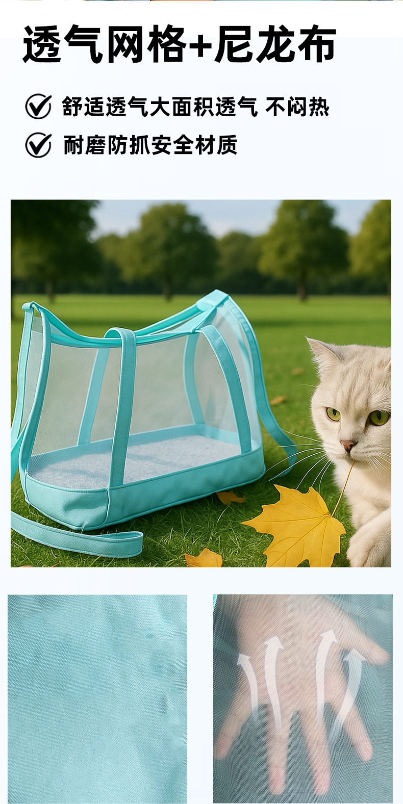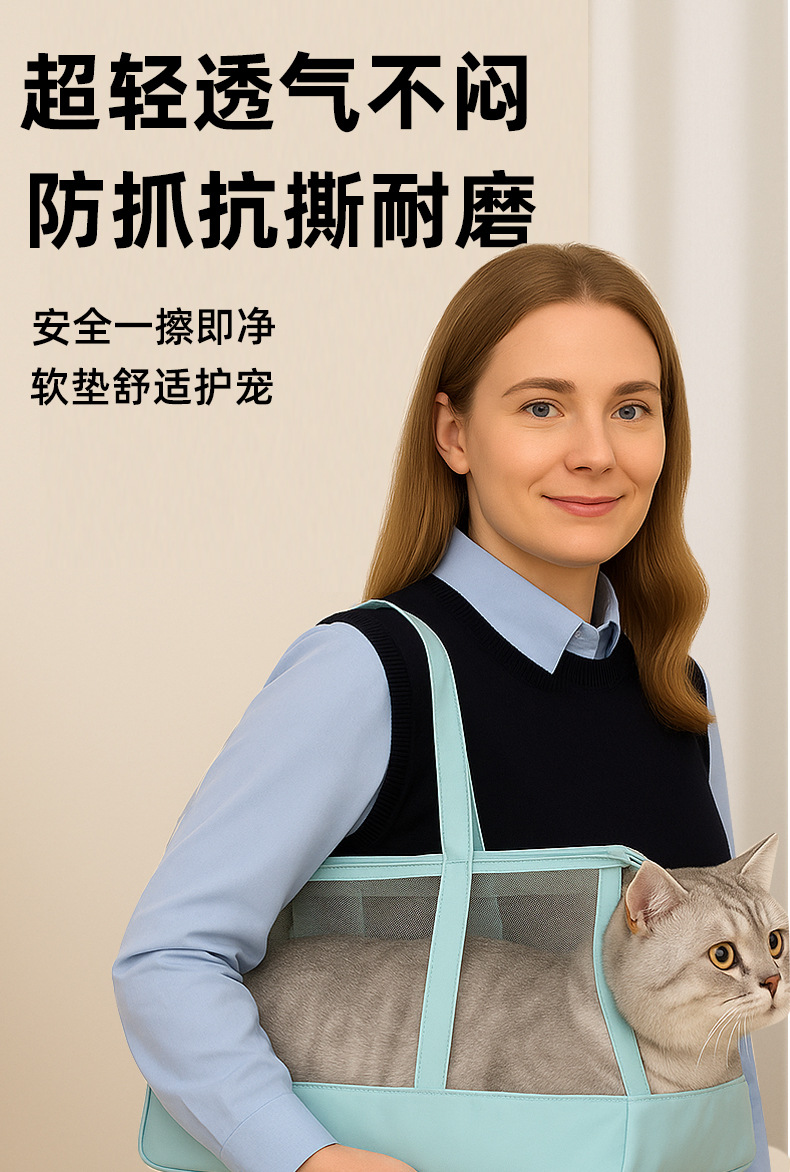 새로운 여름 휴대용 고양이 가방, 고양이가 멋지고 휴대 가능하며 통기성이 있고 편안하며 통풍이 잘되는 어깨 가방, 고양이와 개를 위한 외출 가방