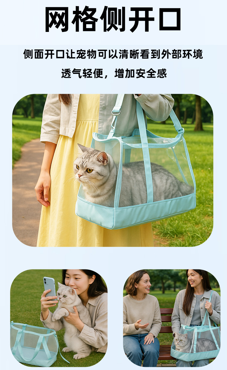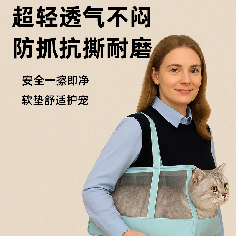 새로운 여름 휴대용 고양이 가방, 고양이가 멋지고 휴대 가능하며 통기성이 있고 편안하며 통풍이 잘되는 어깨 가방, 고양이와 개를 위한 외출 가방스토어 가기