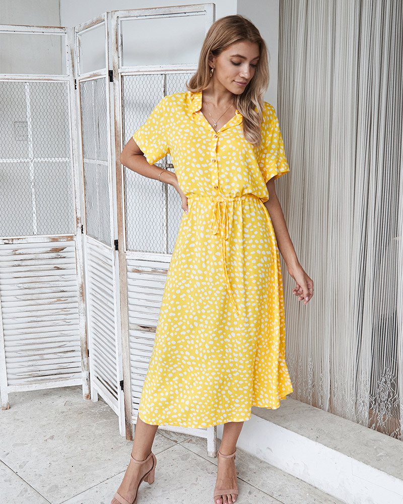 유럽과 미국의 패션 여성 의류, 아마존에서 인기 있는 2026년 여름 물방울 무늬 반팔 미디 드레스