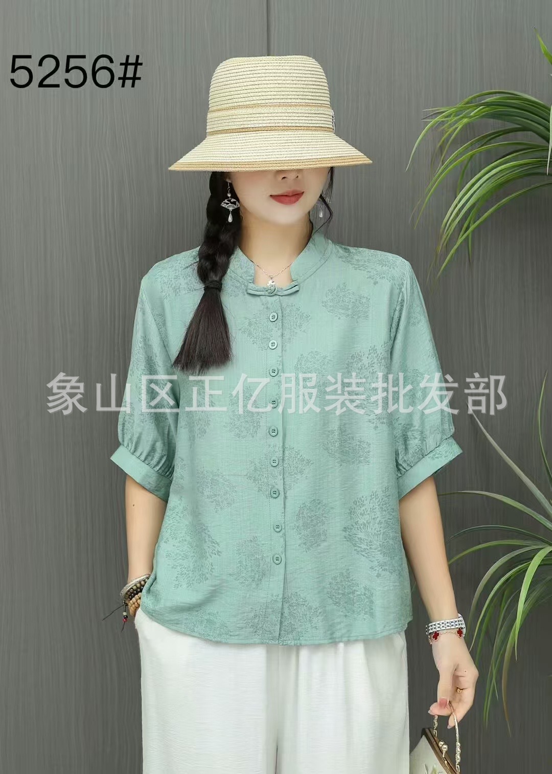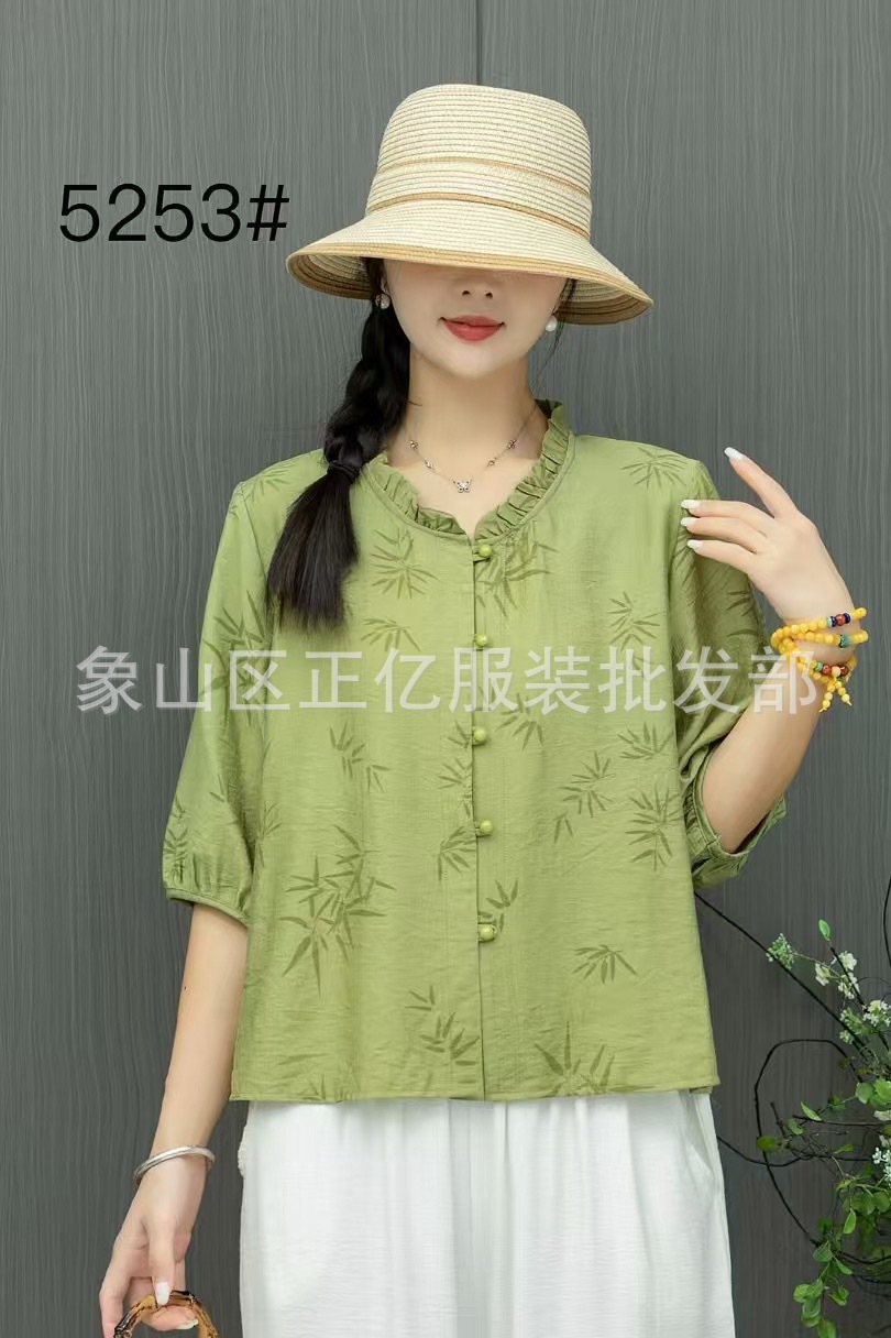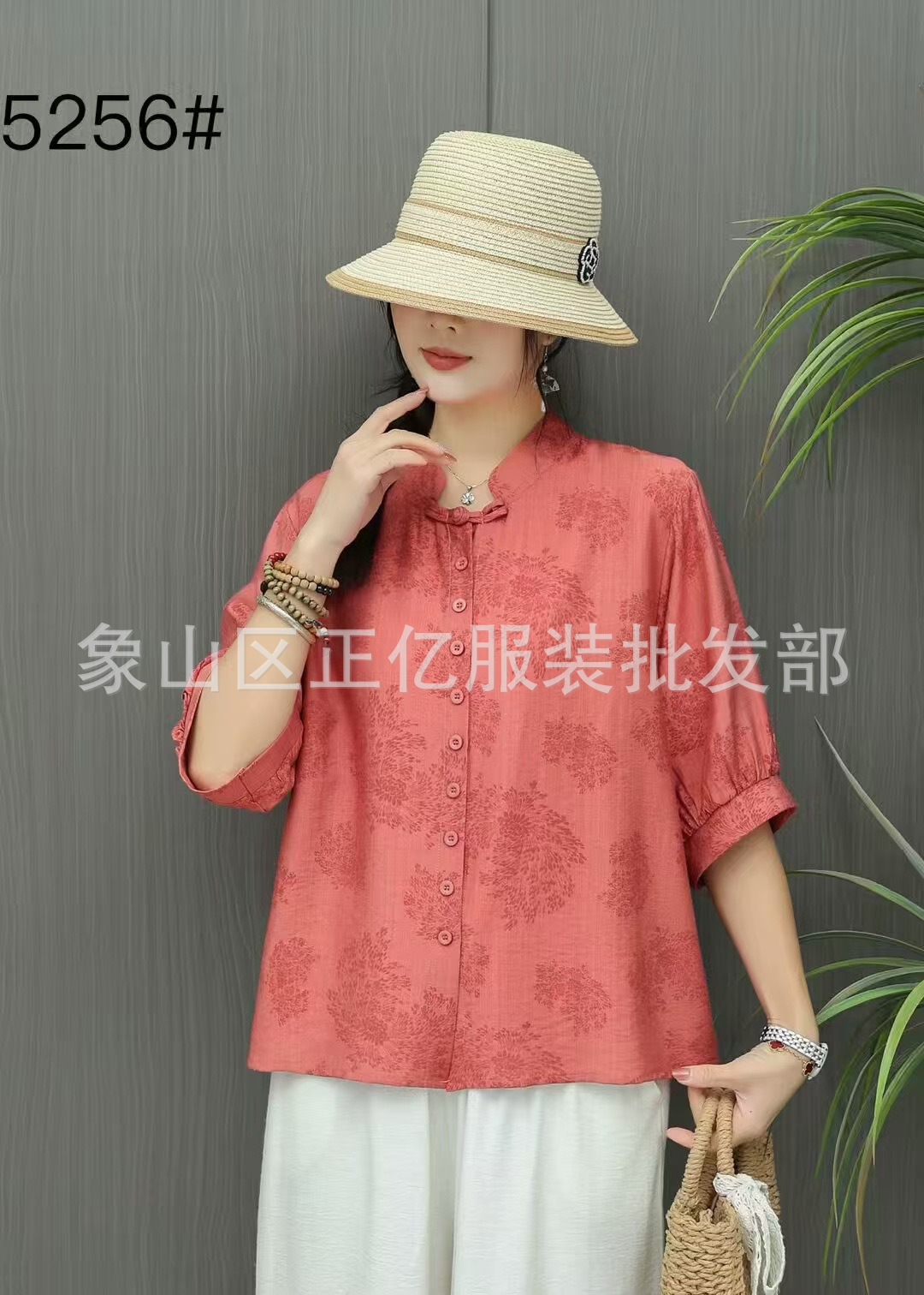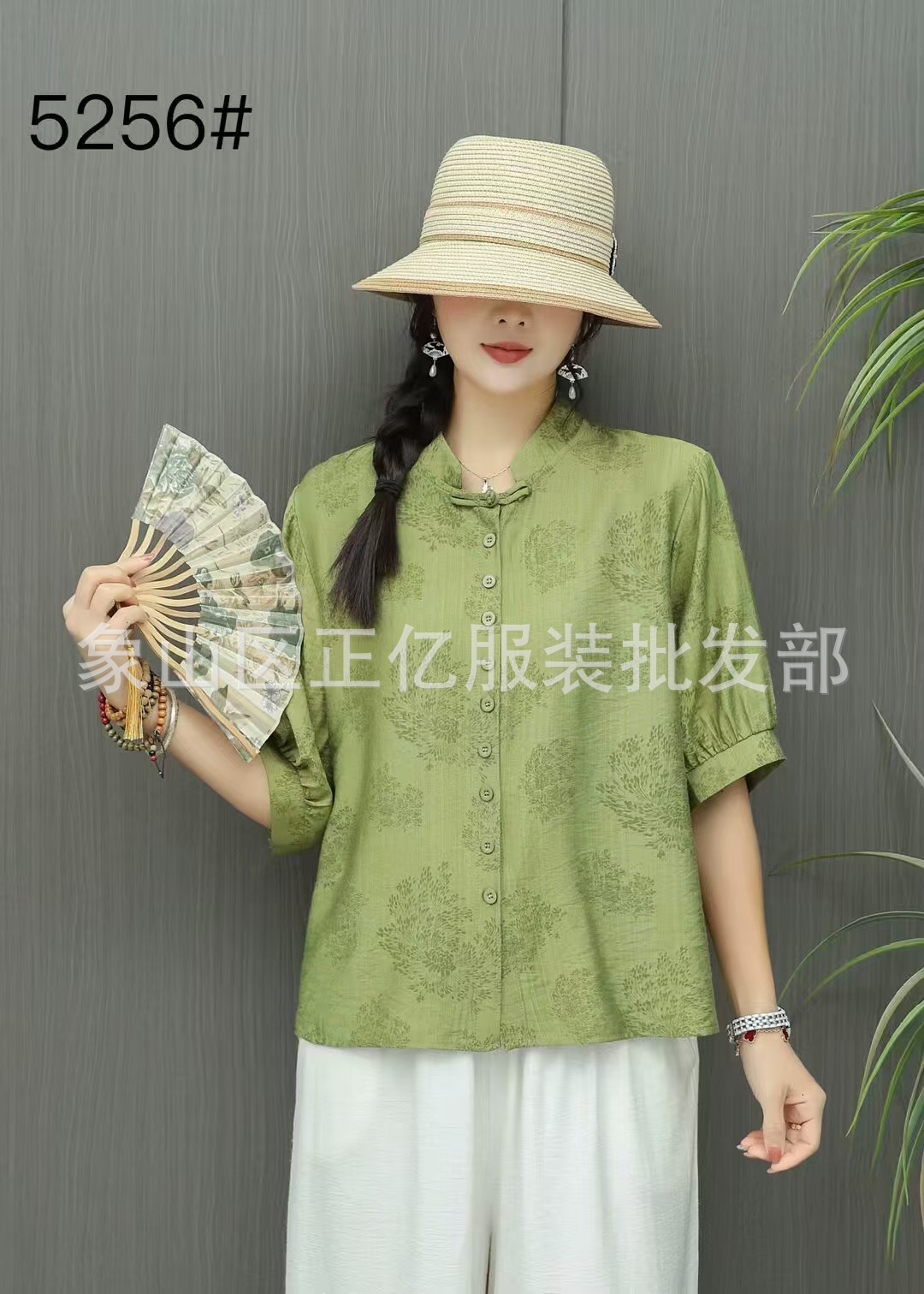 여성을위한 새로운 중국 스타일 국가 스타일 셔츠 여름 착용 2025 새로운 텐셀 코튼 자카드 느슨한 캐주얼 문학 민족 스타일 탑