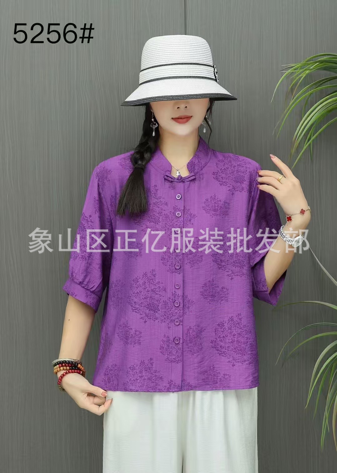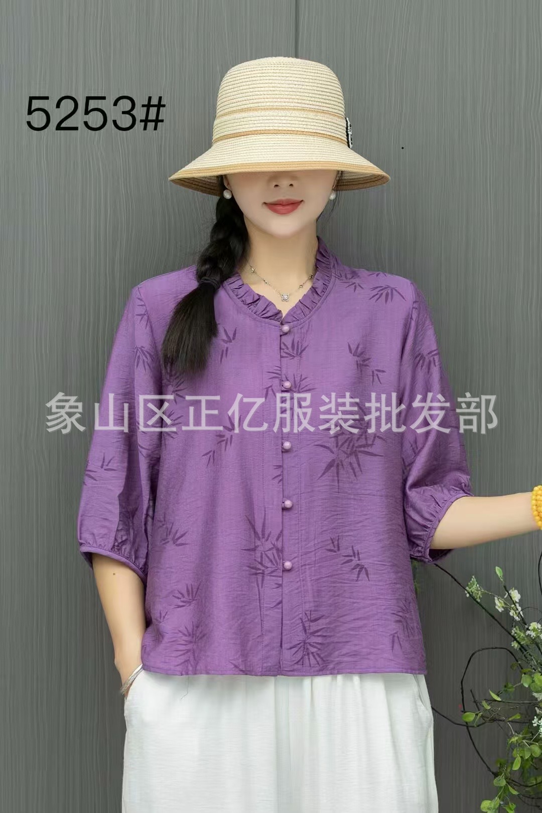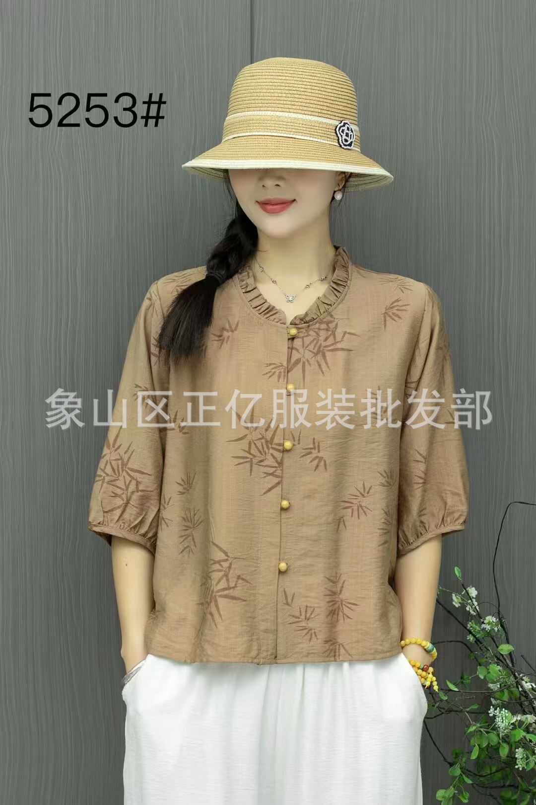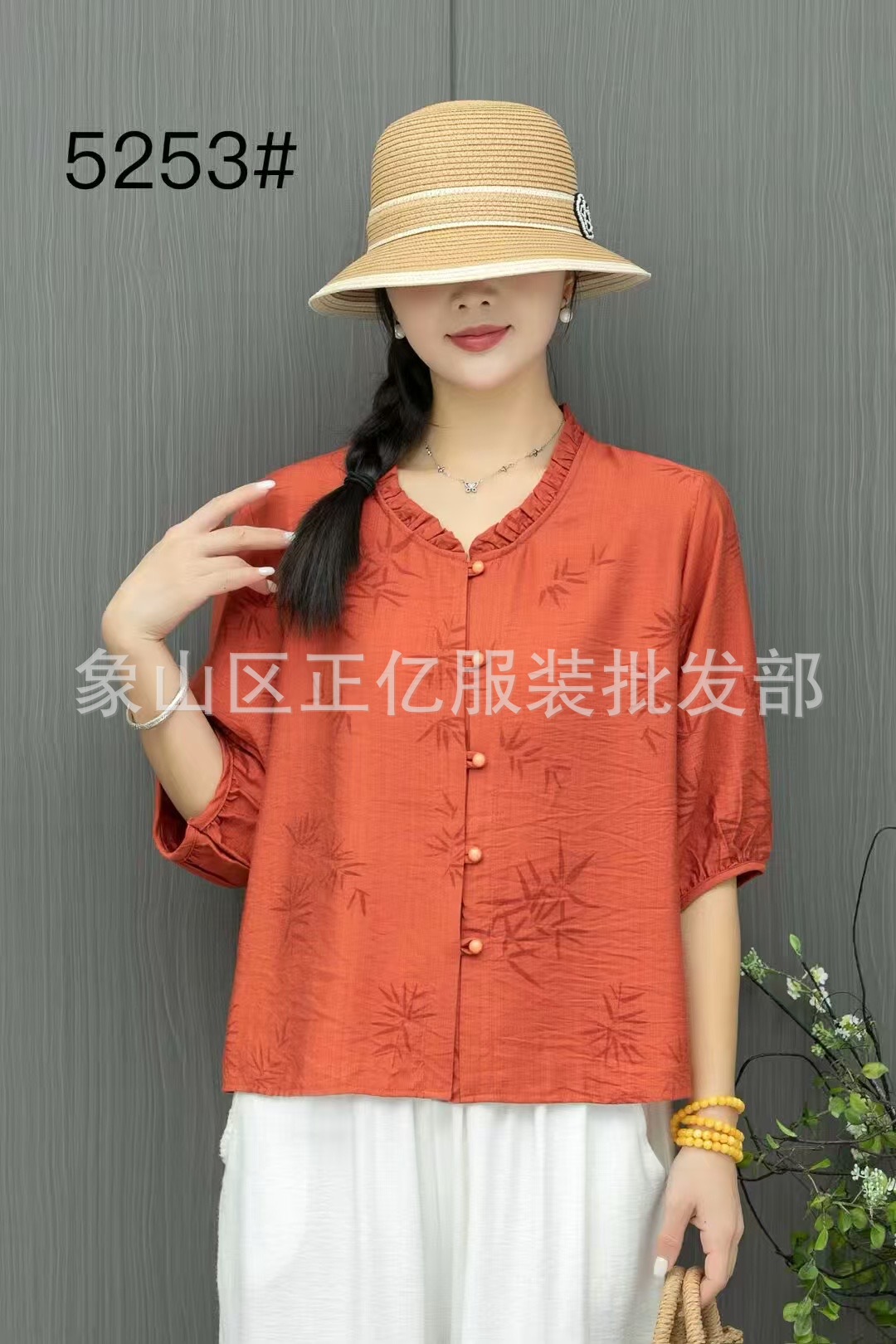여성을위한 새로운 중국 스타일 국가 스타일 셔츠 여름 착용 2025 새로운 텐셀 코튼 자카드 느슨한 캐주얼 문학 민족 스타일 탑