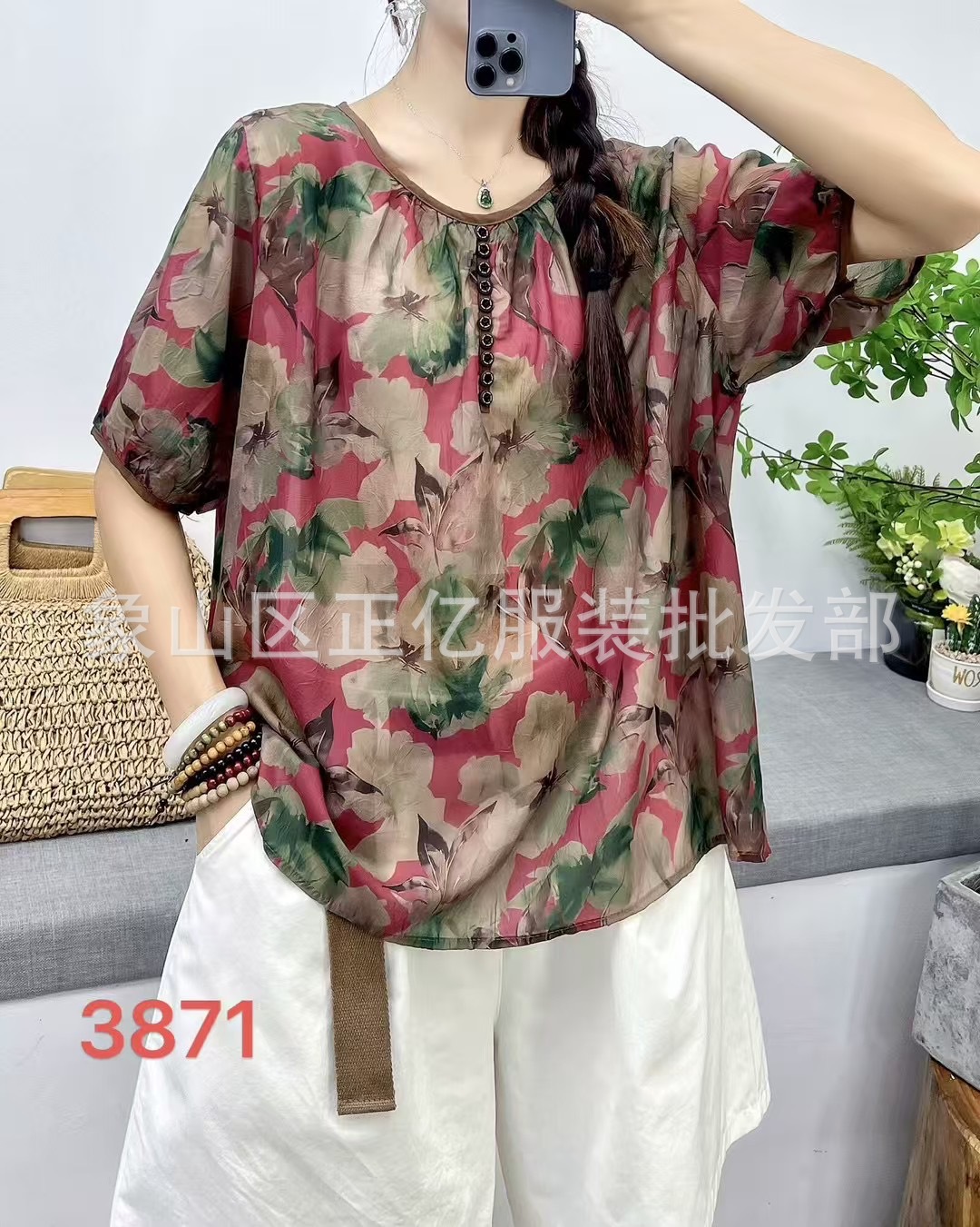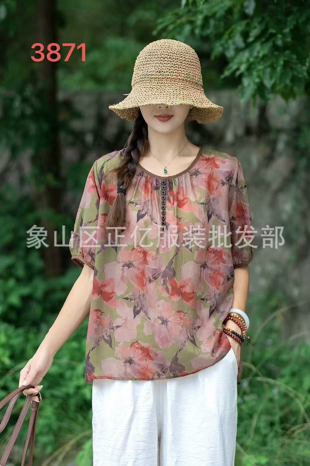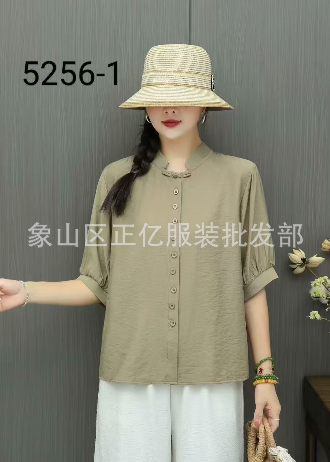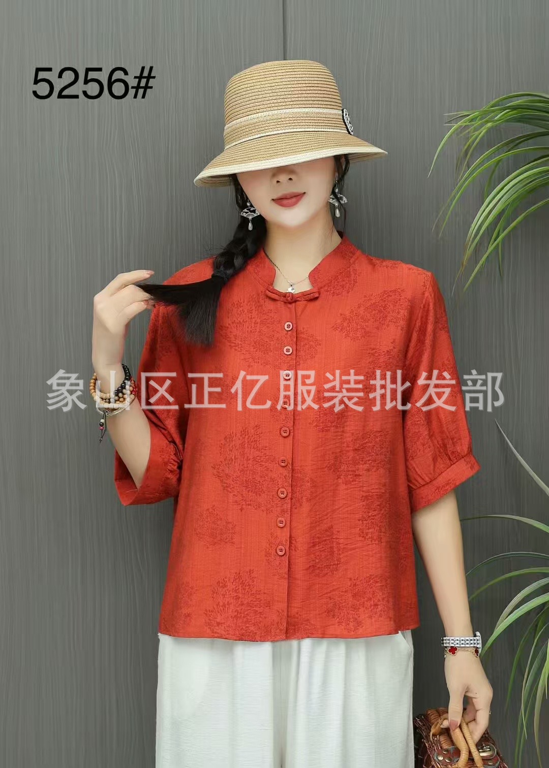 여성을위한 새로운 중국 스타일 국가 스타일 셔츠 여름 착용 2025 새로운 텐셀 코튼 자카드 느슨한 캐주얼 문학 민족 스타일 탑