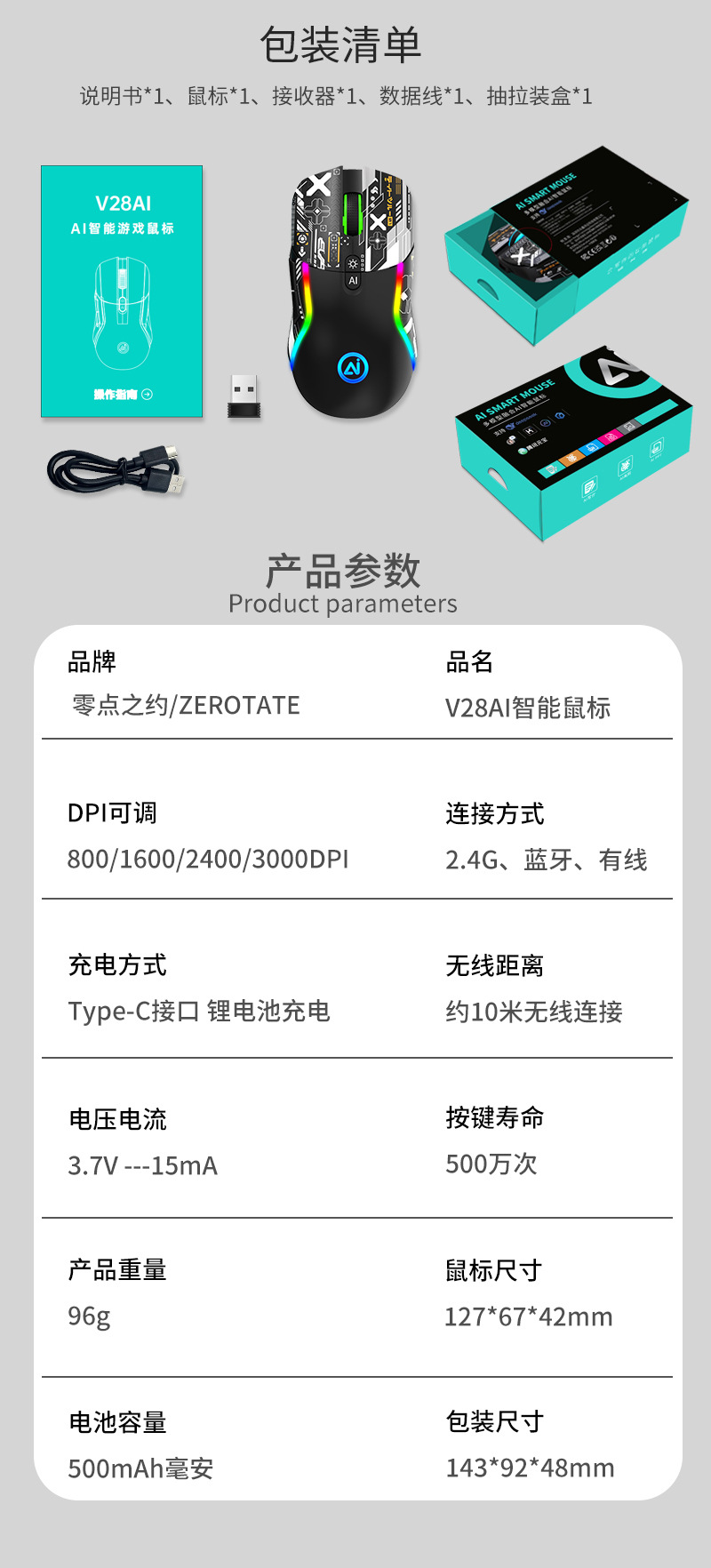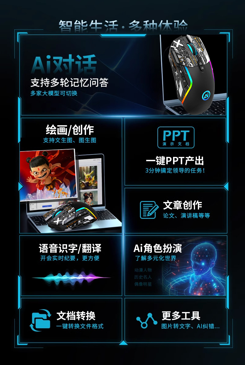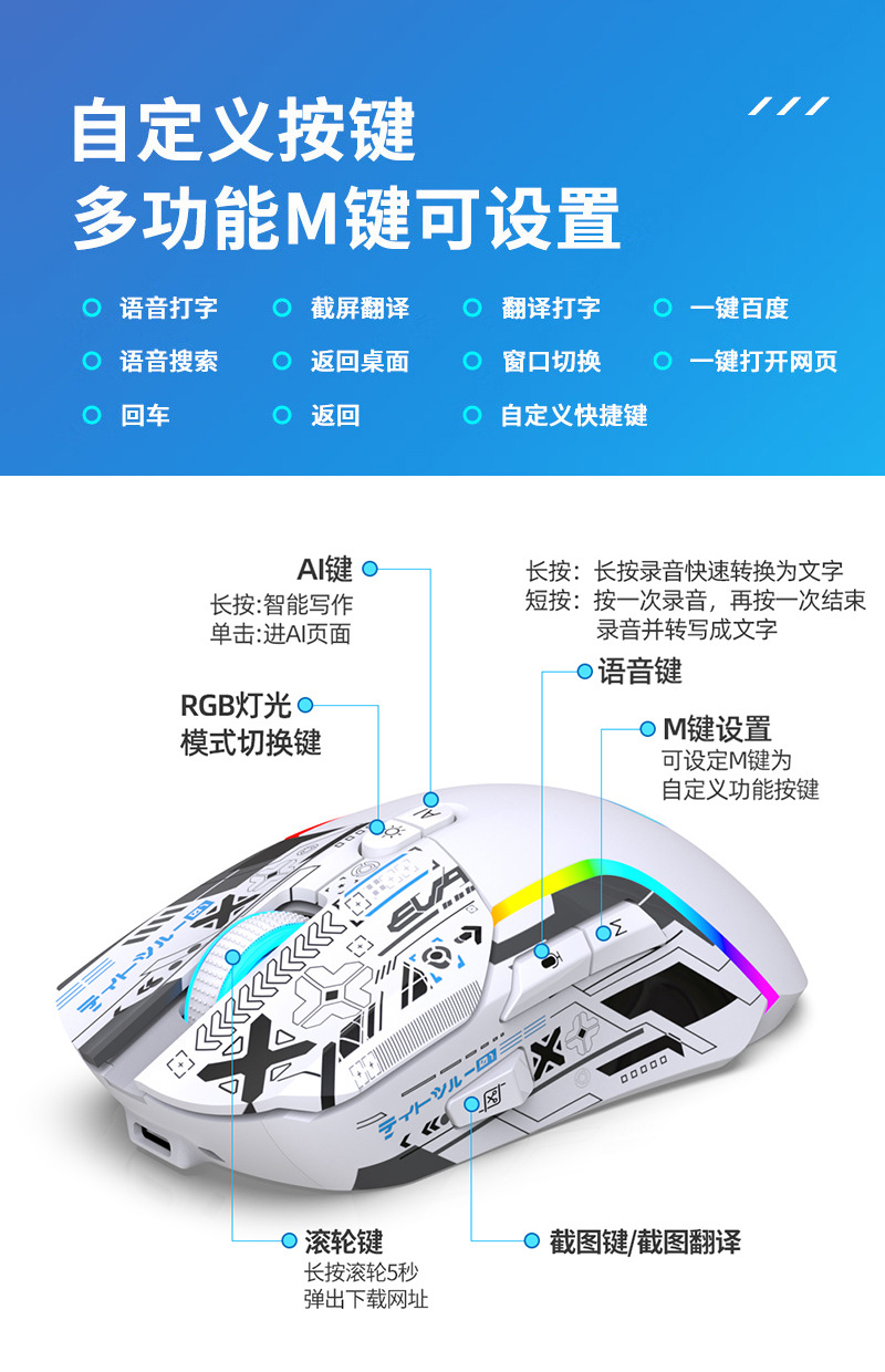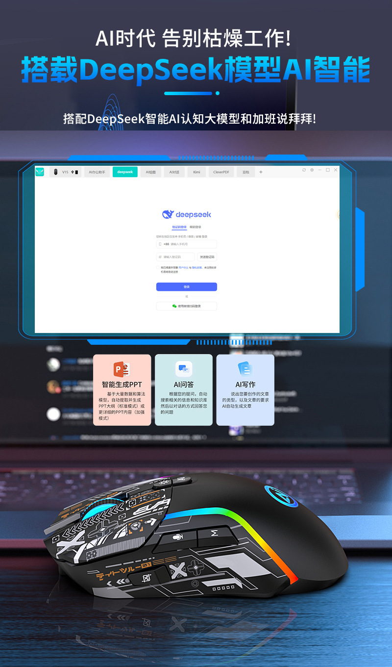 공장 스팟 무선 블루투스 스마트 음성 AI 마우스 v28 쓰기 번역 스크린샷 deepseek bean bag