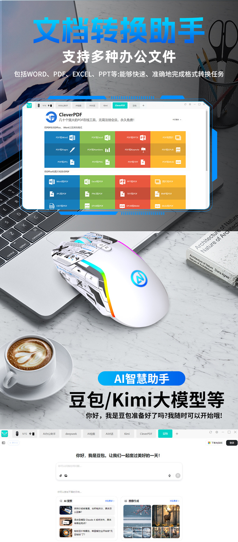 공장 스팟 무선 블루투스 스마트 음성 AI 마우스 v28 쓰기 번역 스크린샷 deepseek bean bag스토어 가기