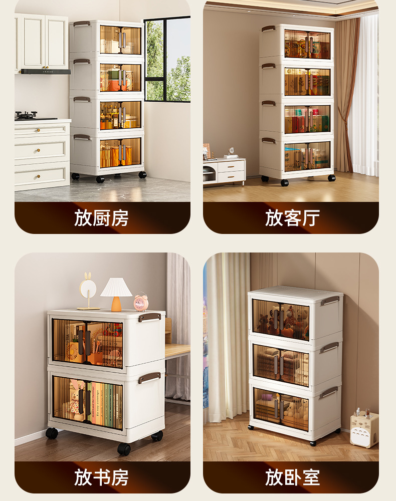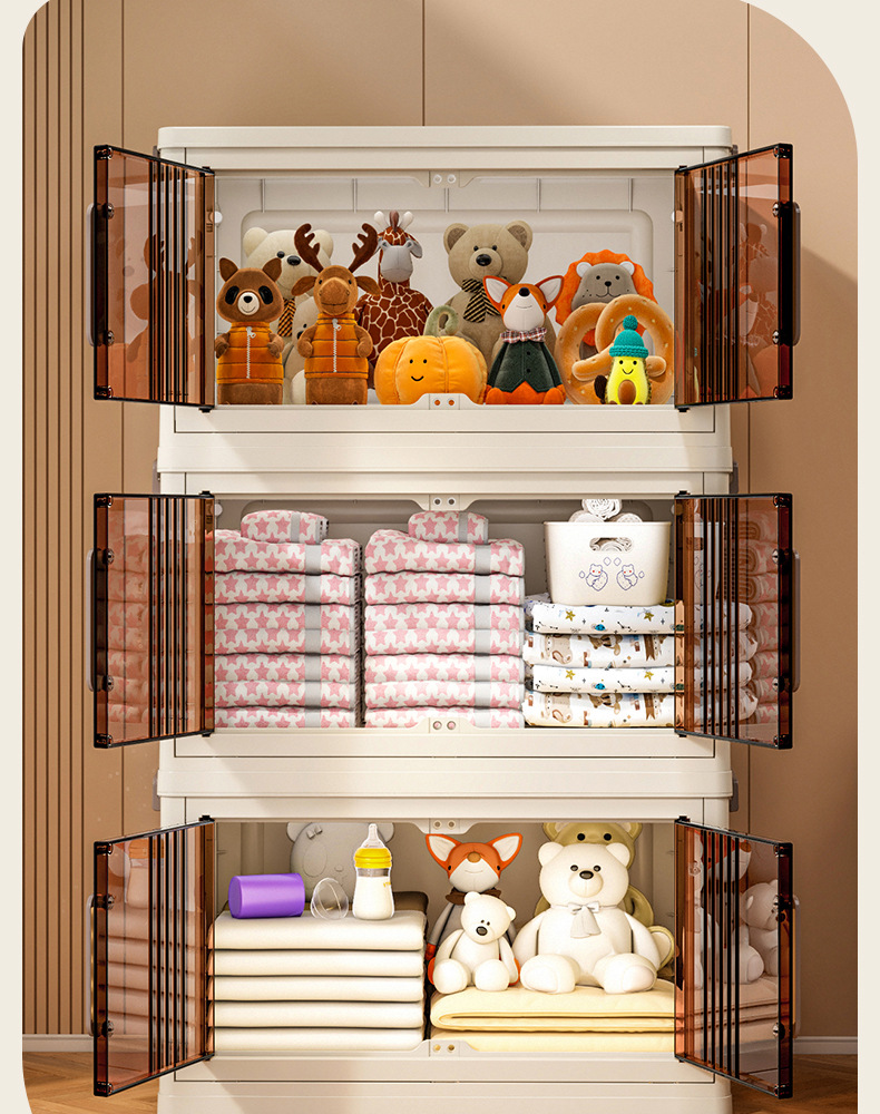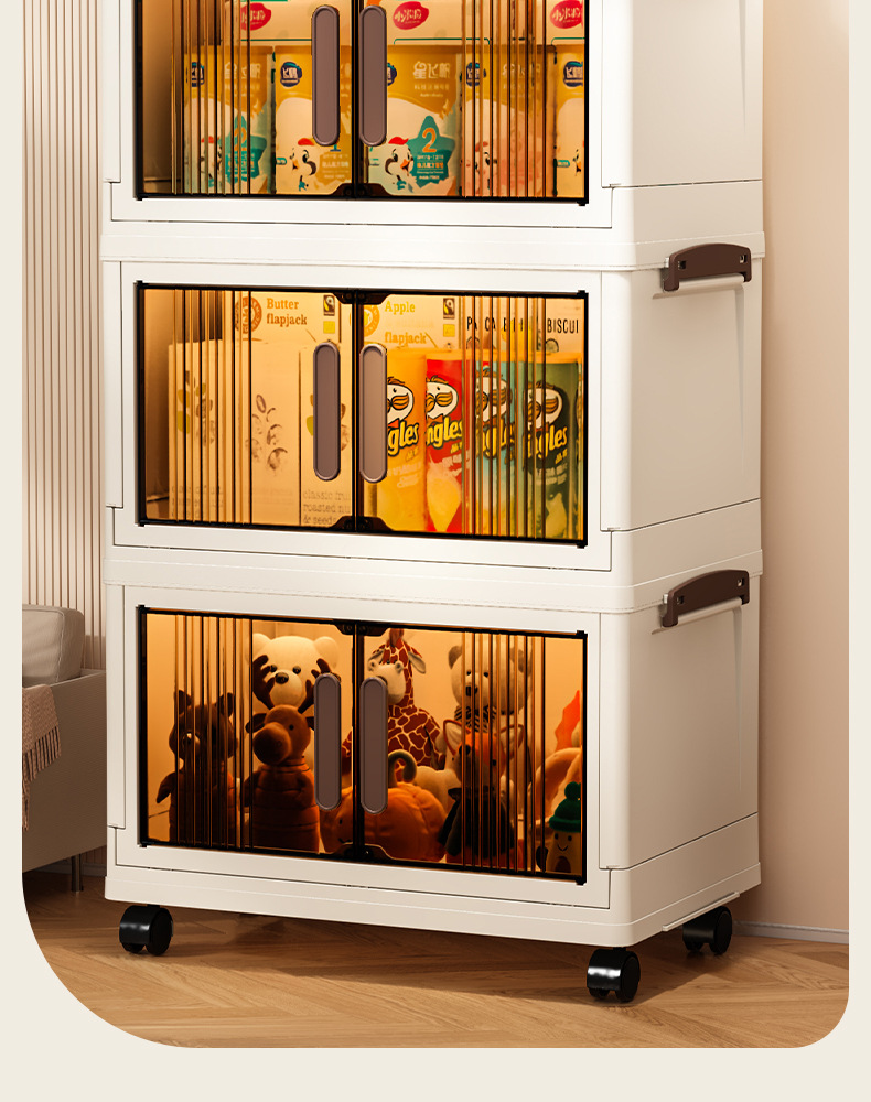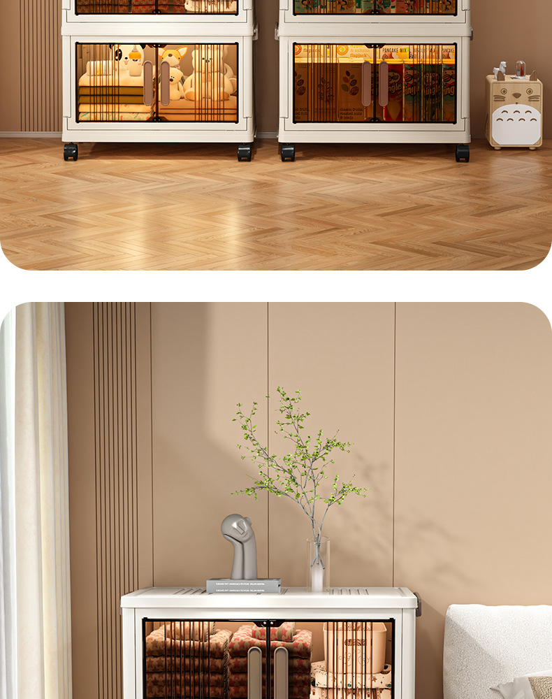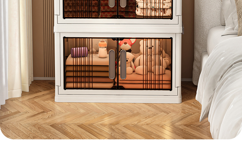 가구 설치-무료 접이식 저장 캐비닛 다기능 저장 상자 투명 저장 캐비닛 다층 더블 도어 저장 캐비닛