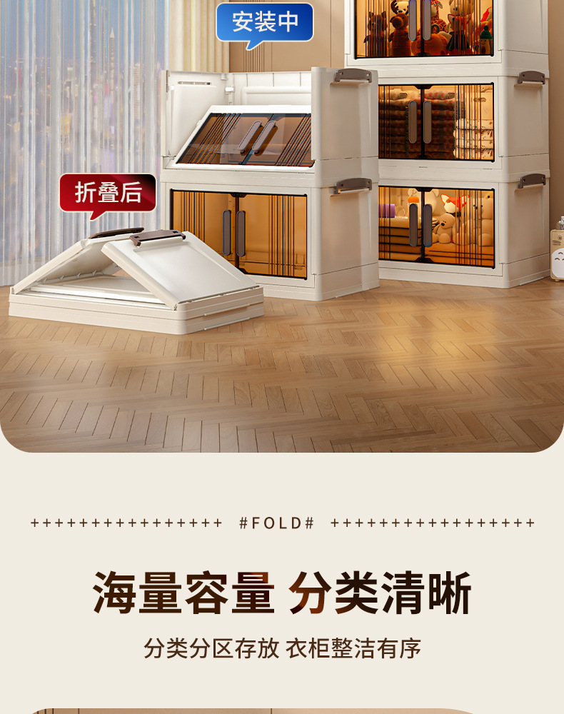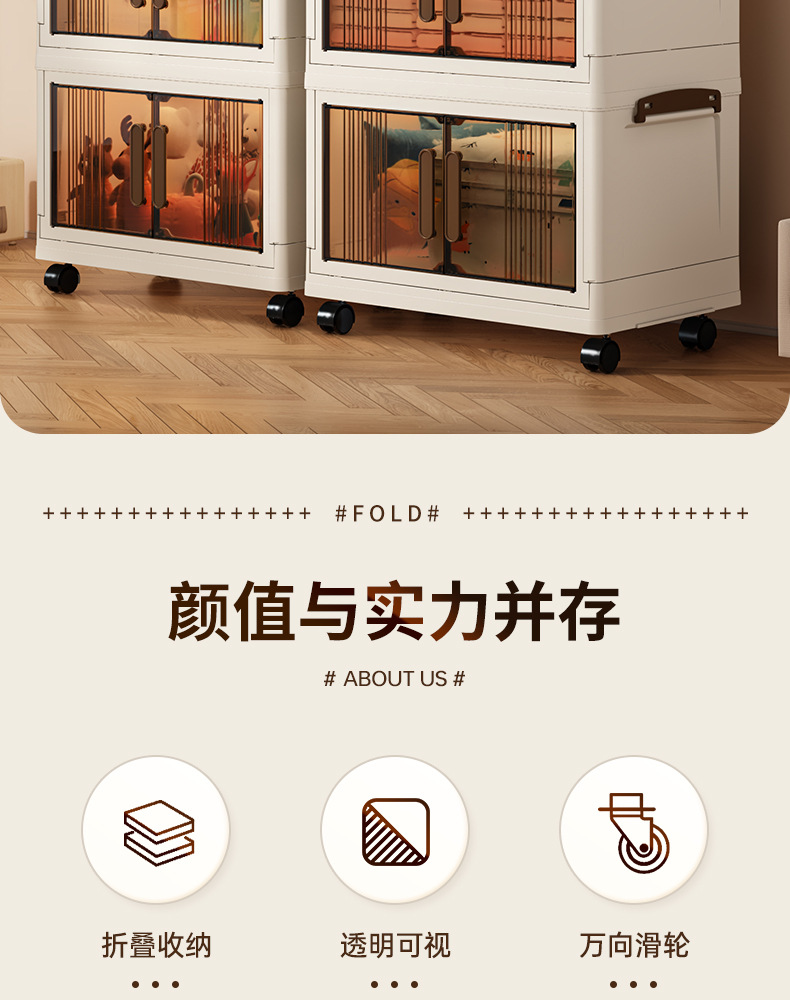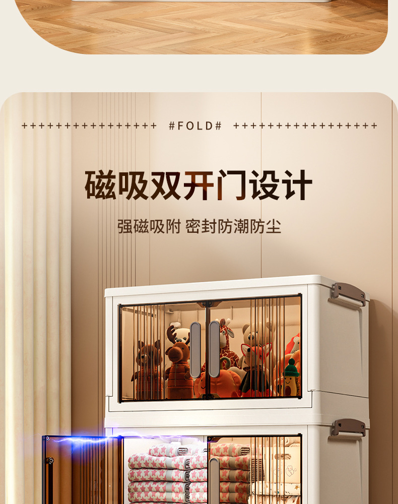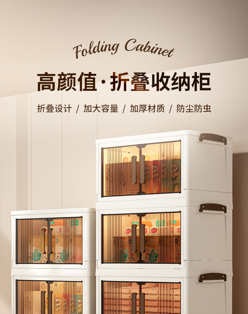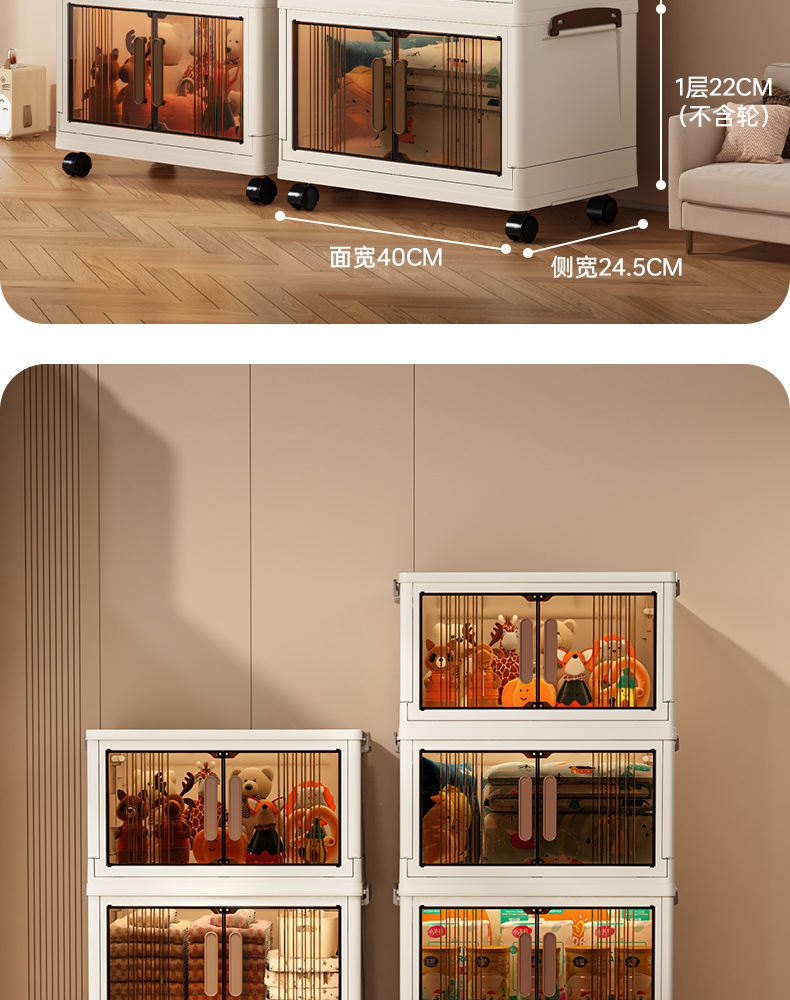 가구 설치-무료 접이식 저장 캐비닛 다기능 저장 상자 투명 저장 캐비닛 다층 더블 도어 저장 캐비닛