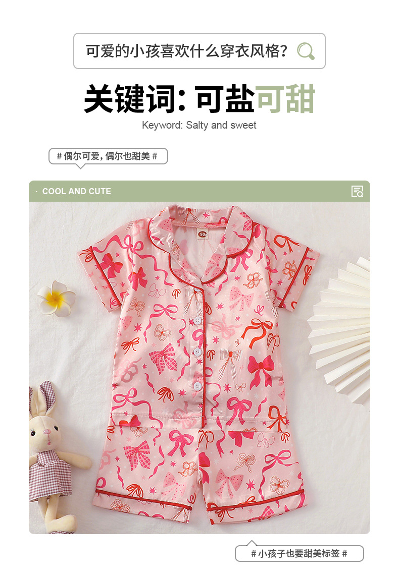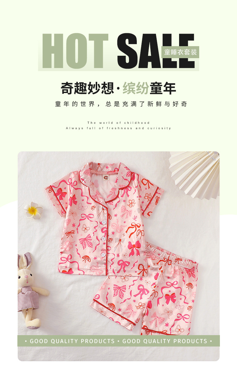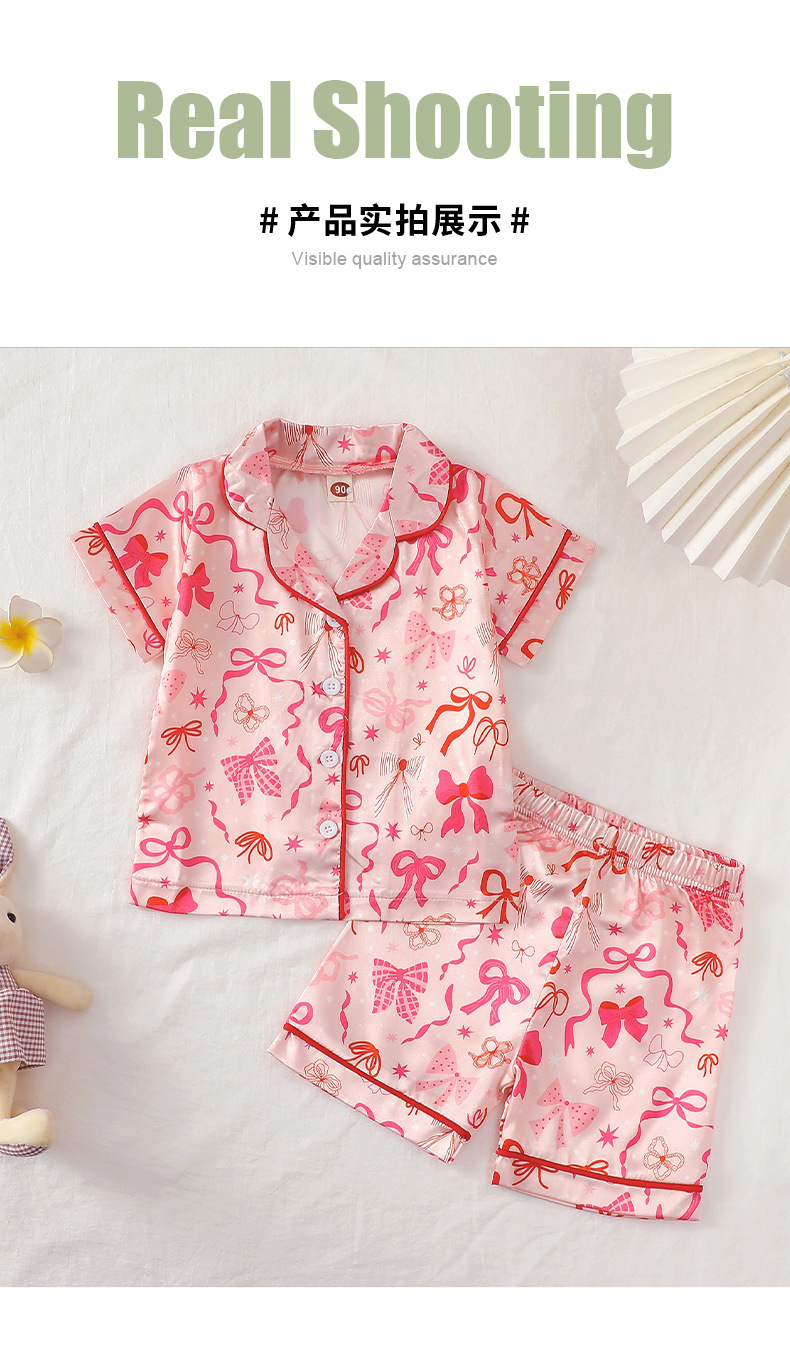 어린이 잠옷 세트 여름 활 인쇄 소녀 홈 옷 두 조각 아동복 반소매 옷깃 티셔츠
