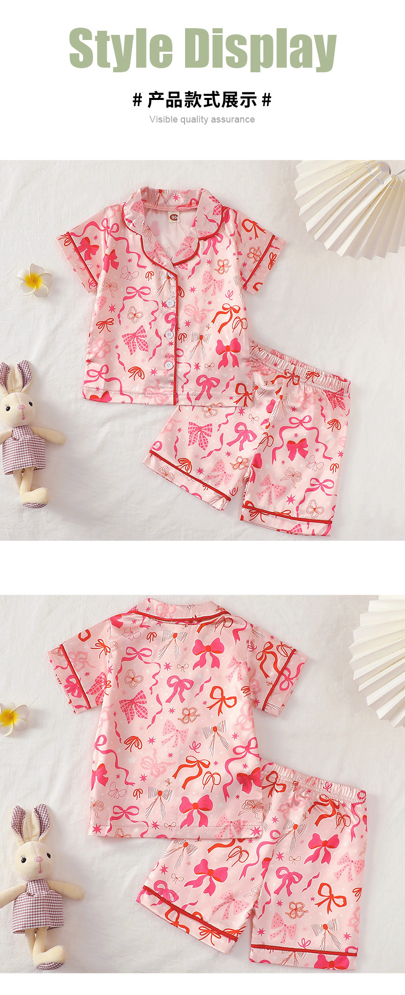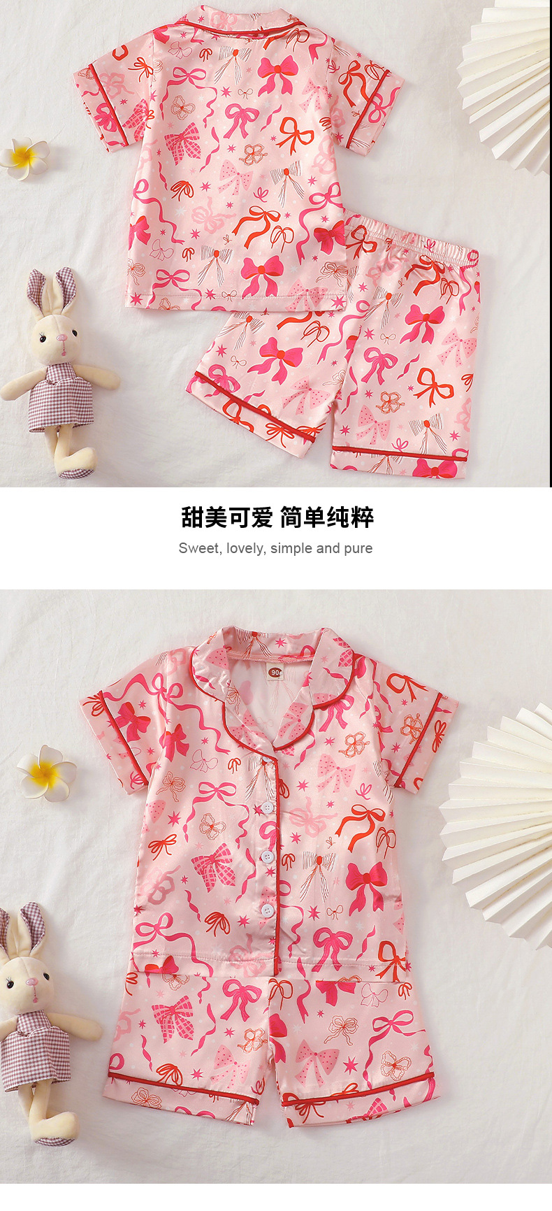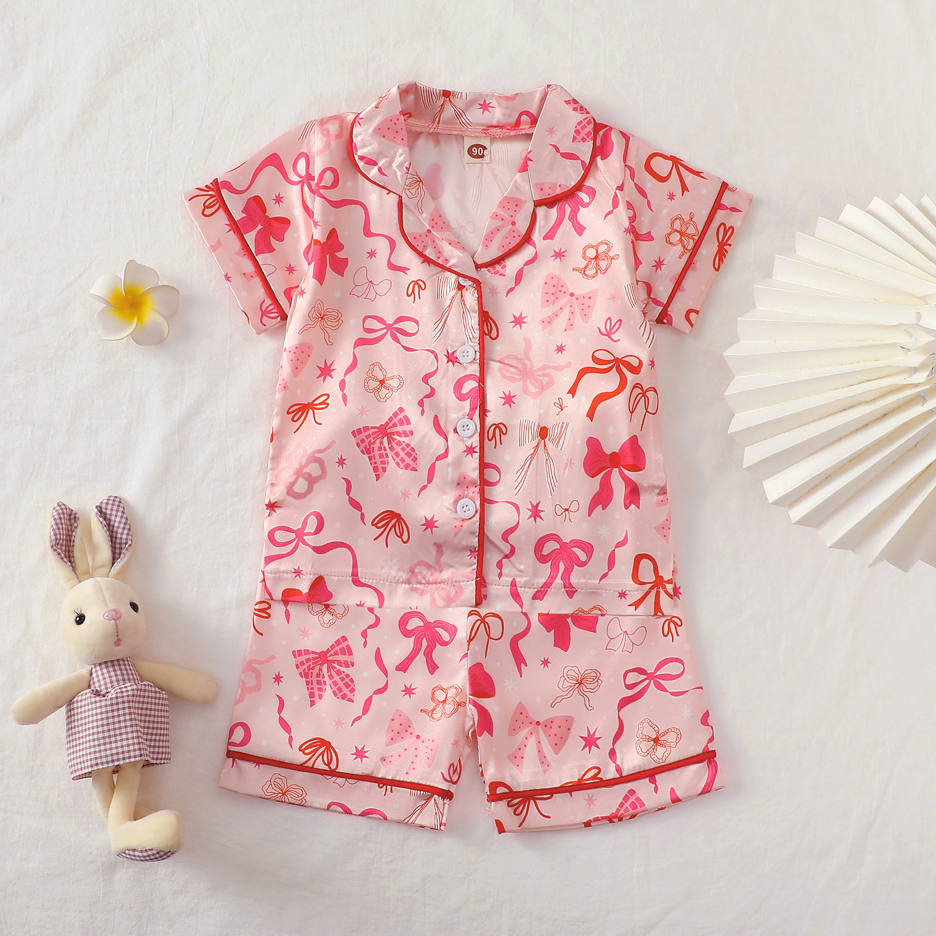 어린이 잠옷 세트 여름 활 인쇄 소녀 홈 옷 두 조각 아동복 반소매 옷깃 티셔츠