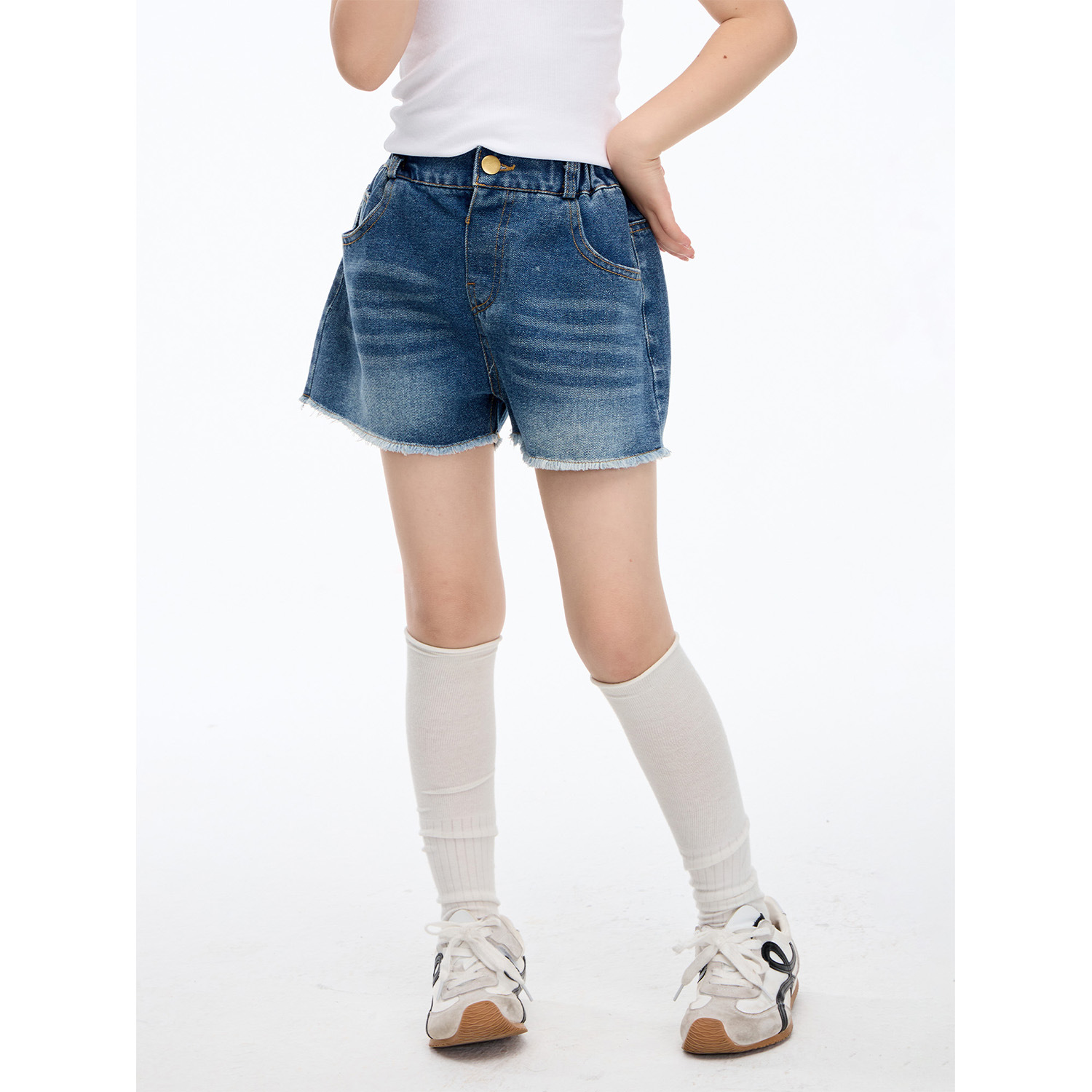 여자 울 엣지 데님 반바지 2025 여름 새 어린이 한국 캐주얼 핫 팬츠 느슨한 올매치 트렌디 팬츠스토어 가기