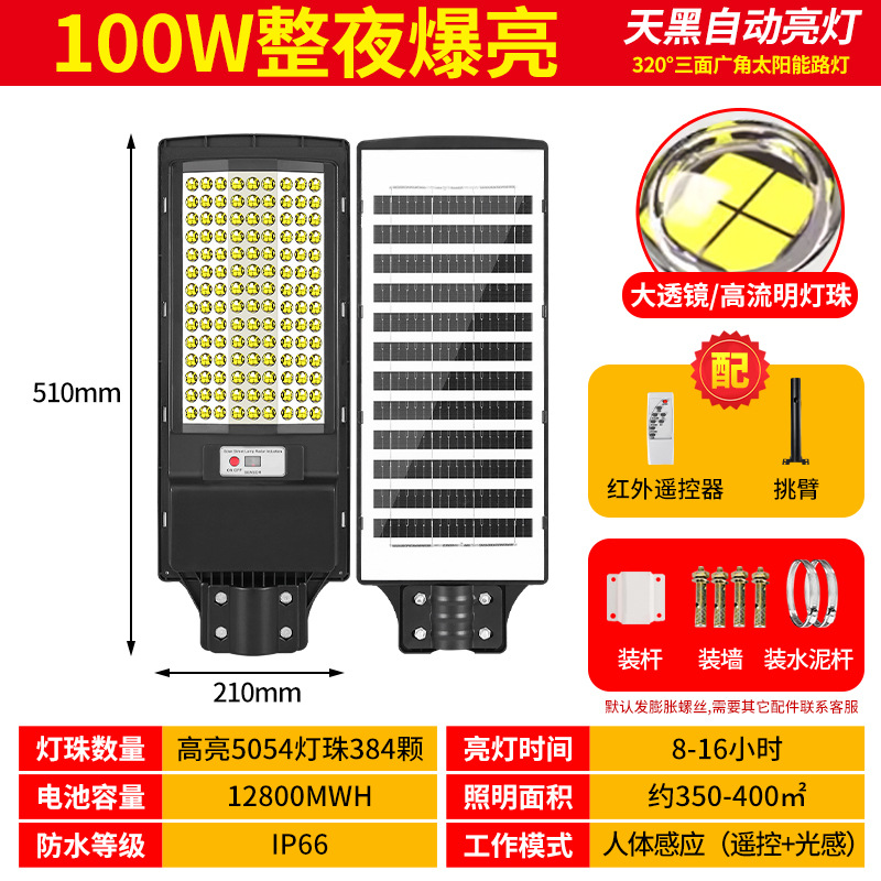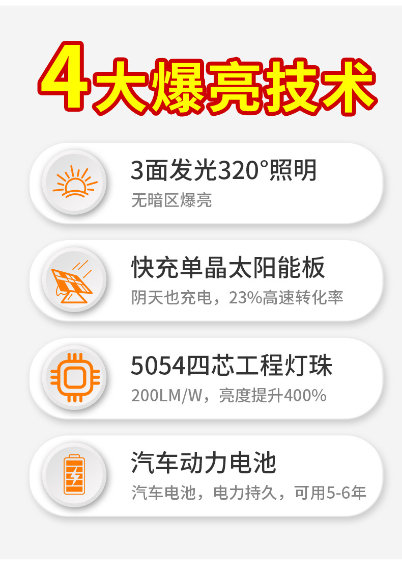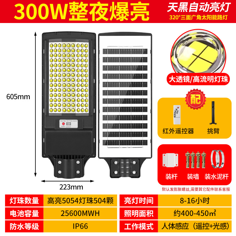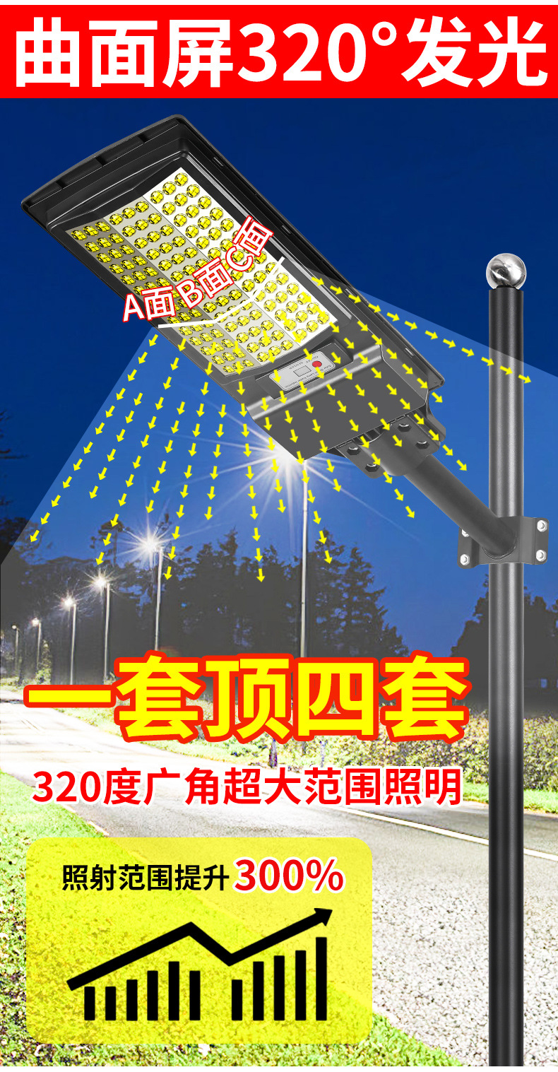 • 대광각 3면 렌즈, 매우 밝은 200W 4코어 대형 렌즈 [200 평방 미터 조명] 인체 센서 + 전봇대 설치 버전