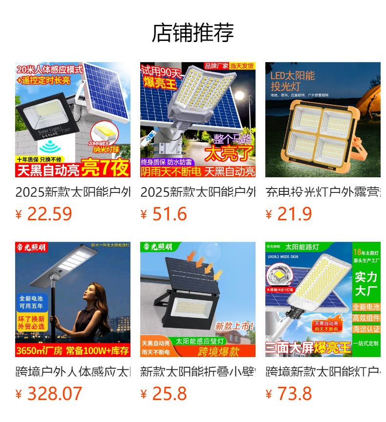 태양 야외 조명 2025 가정용 정원 조명 조명 방수 유도 새로운 농촌 강한 빛 가로등 IP66스토어 가기