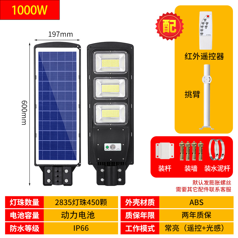 • 업그레이드된 3면 렌즈, 매우 밝은 1500W 4코어 대형 렌즈 [1000 평방 미터 조명] 인체 센서 + 시멘트 폴 버전