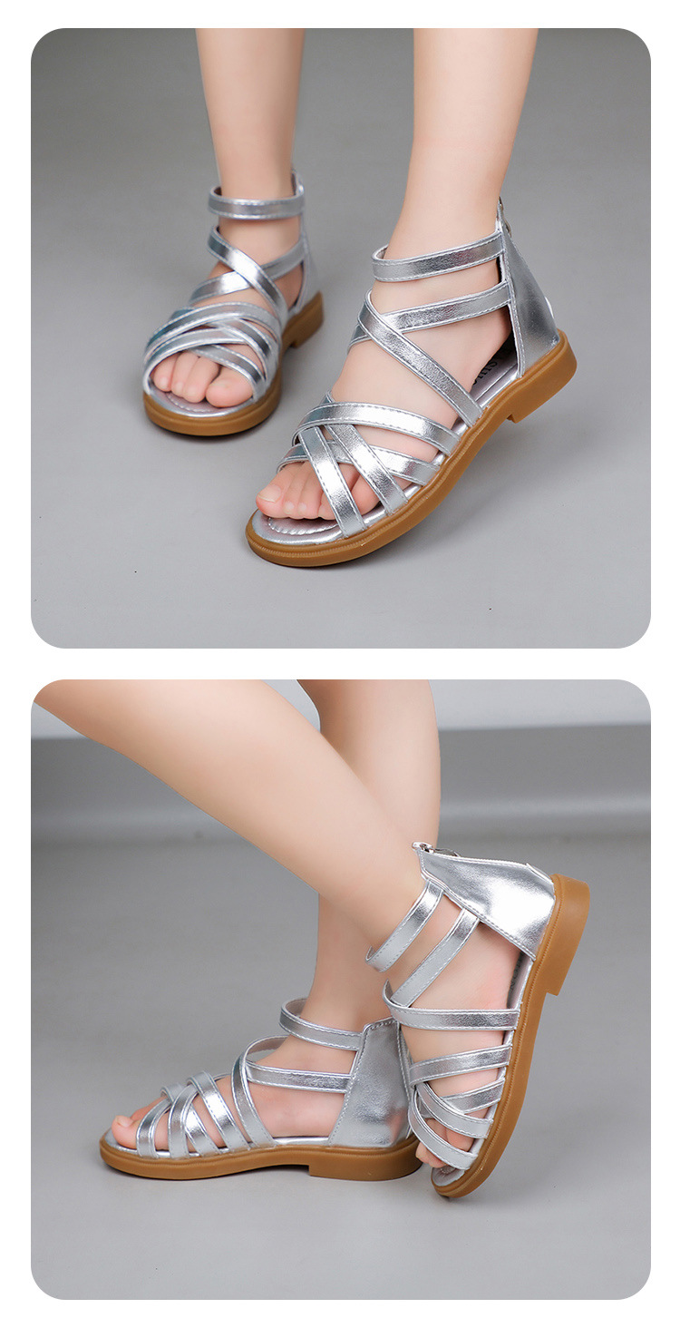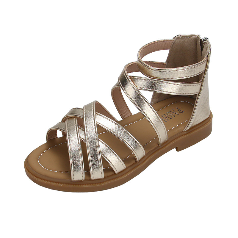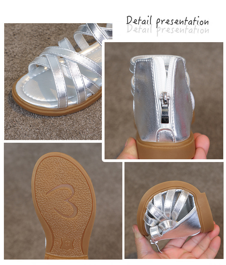여자 샌들 2025 여름 새로운 어린이 신발 어린 소녀 공주 신발 부드러운 밑창 로마 신발 캐주얼 유행