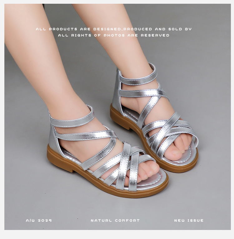 여자 샌들 2025 여름 새로운 어린이 신발 어린 소녀 공주 신발 부드러운 밑창 로마 신발 캐주얼 유행스토어 가기