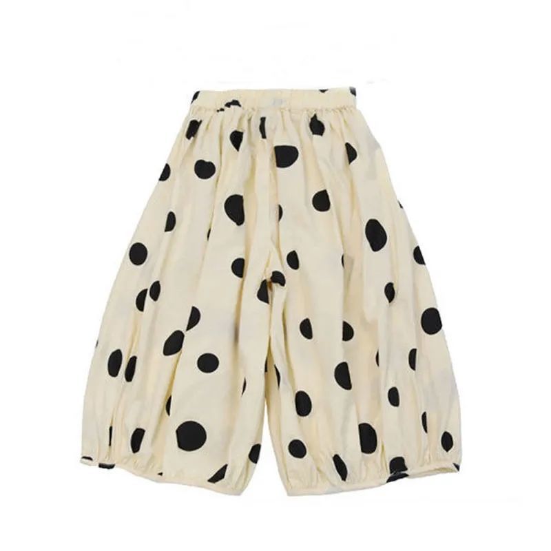 여아 정장 여름 옷 2024 새로운 투피스 조끼 반팔 캐주얼 블루머 얇은 폴카 도트 와이드 팬츠 유행