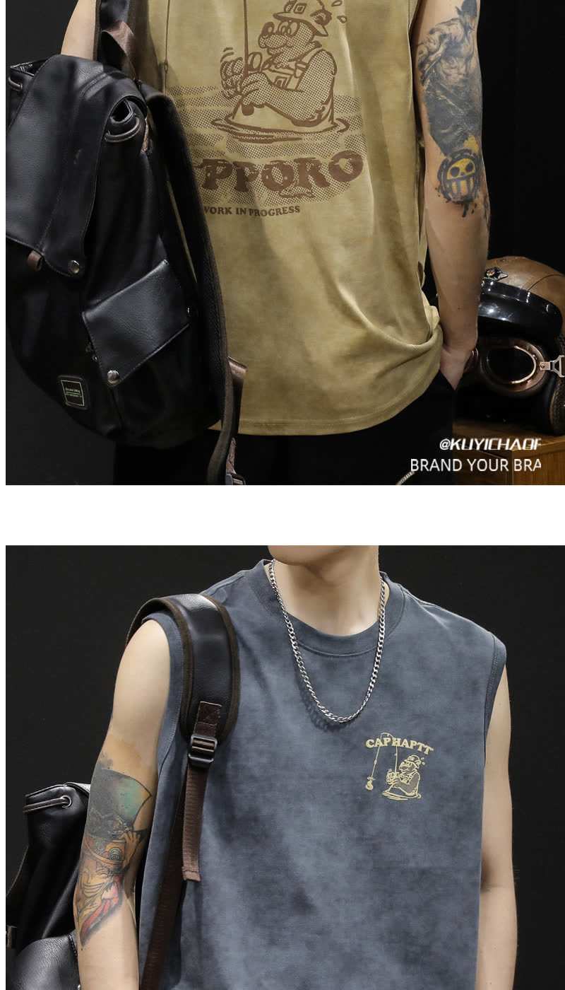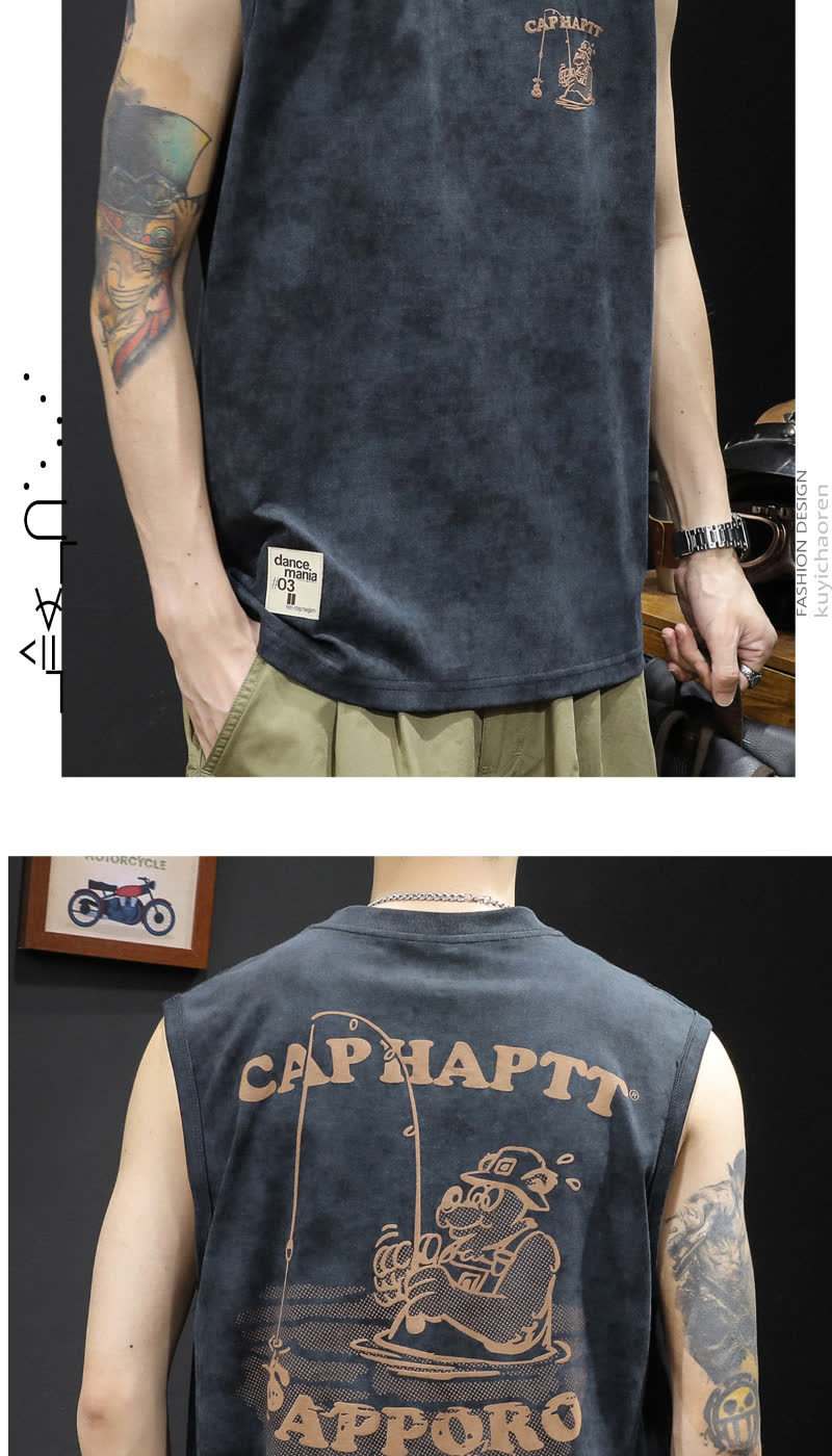 남성과 청소년을 위한 순면 조끼, 민소매 라운드 넥, 일반 루즈 조끼, 여름 표준 스포츠 및 피트니스스토어 가기