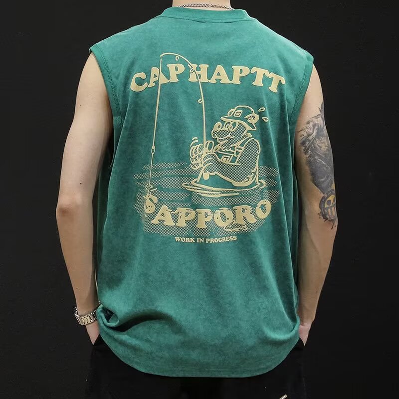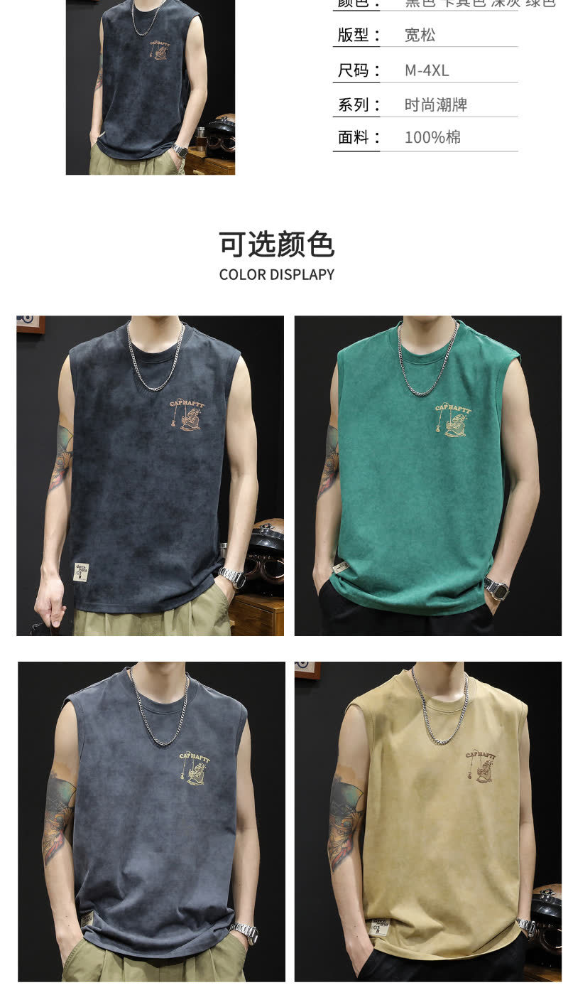 남성과 청소년을 위한 순면 조끼, 민소매 라운드 넥, 일반 루즈 조끼, 여름 표준 스포츠 및 피트니스