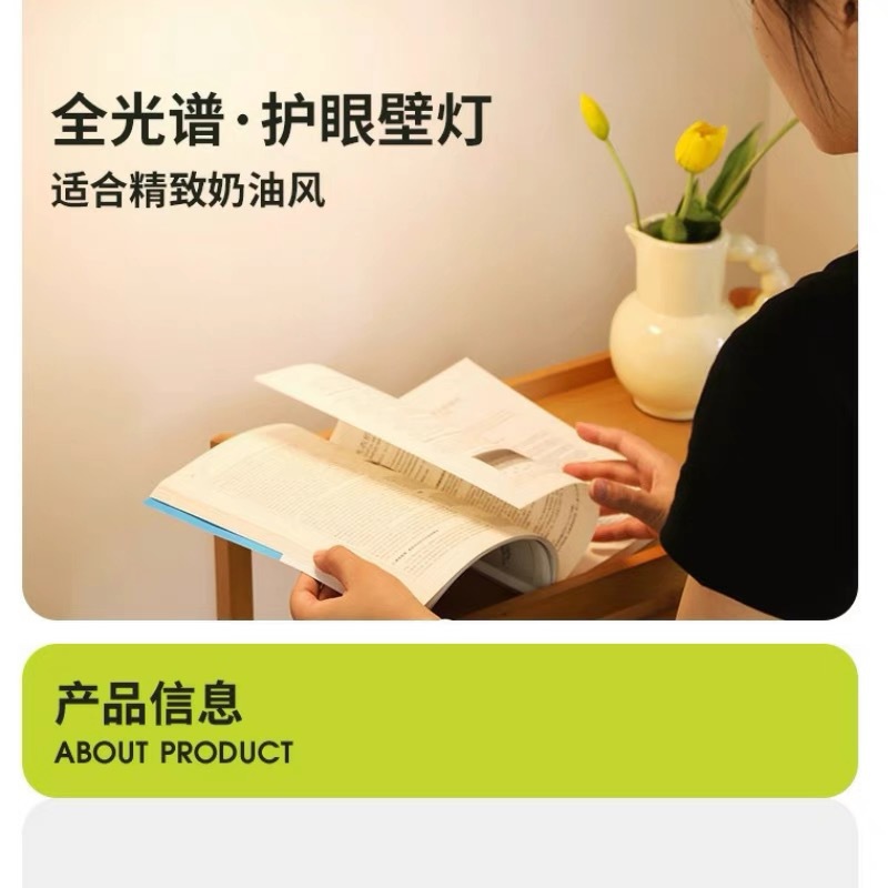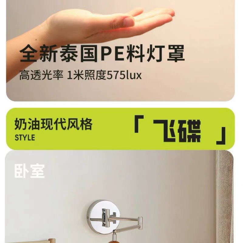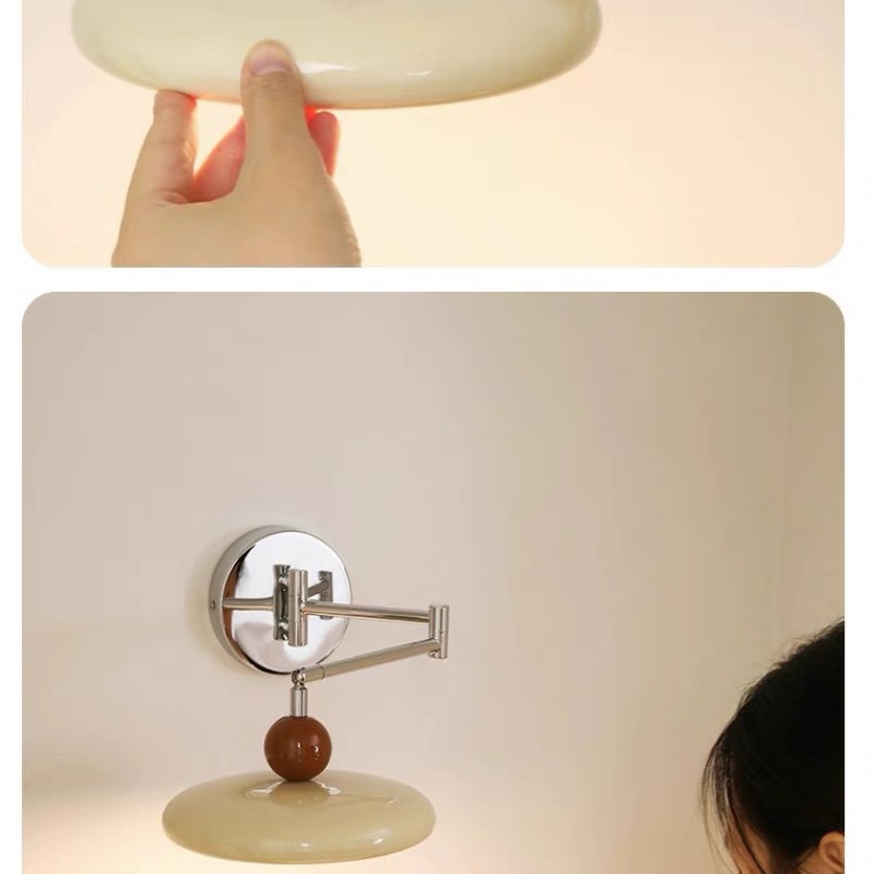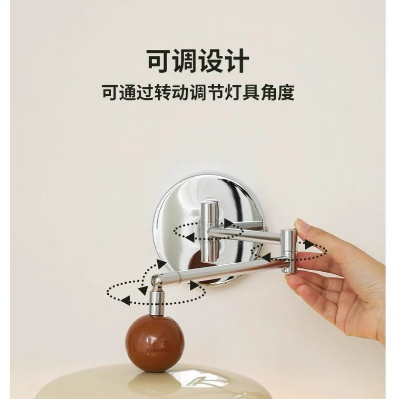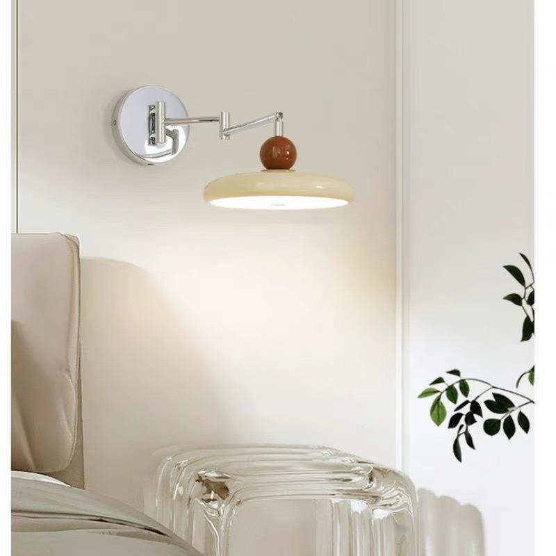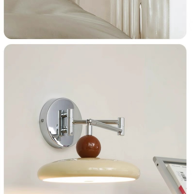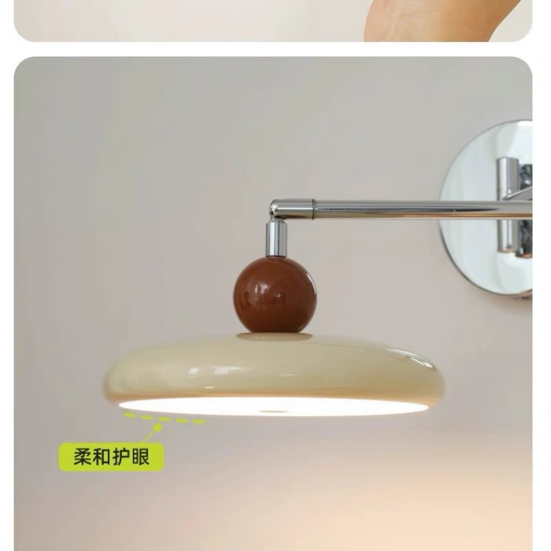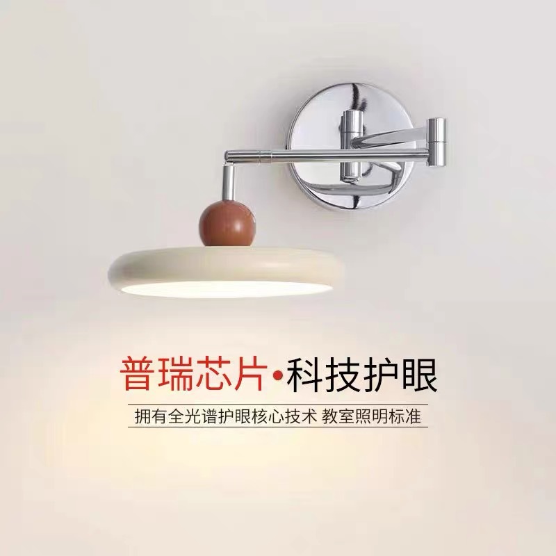 프렌치 크림 스타일 벽 램프, 현대적인 미니멀리스트 스윙 암 침실 분위기 침대 옆 램프, 중세 회전식 눈 보호 램프