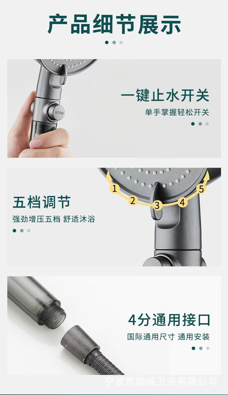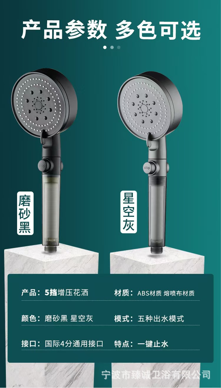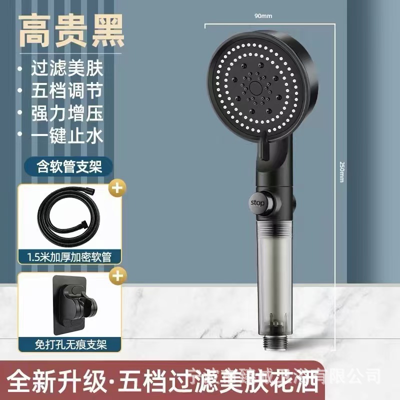• 하이엔드 필터링 스킨 뷰티 샤워 헤드 [샤워 헤드 + 1.5m 블랙 암호화 두꺼운 샤워 파이프 + 펀치 프리 샤워 브래킷]