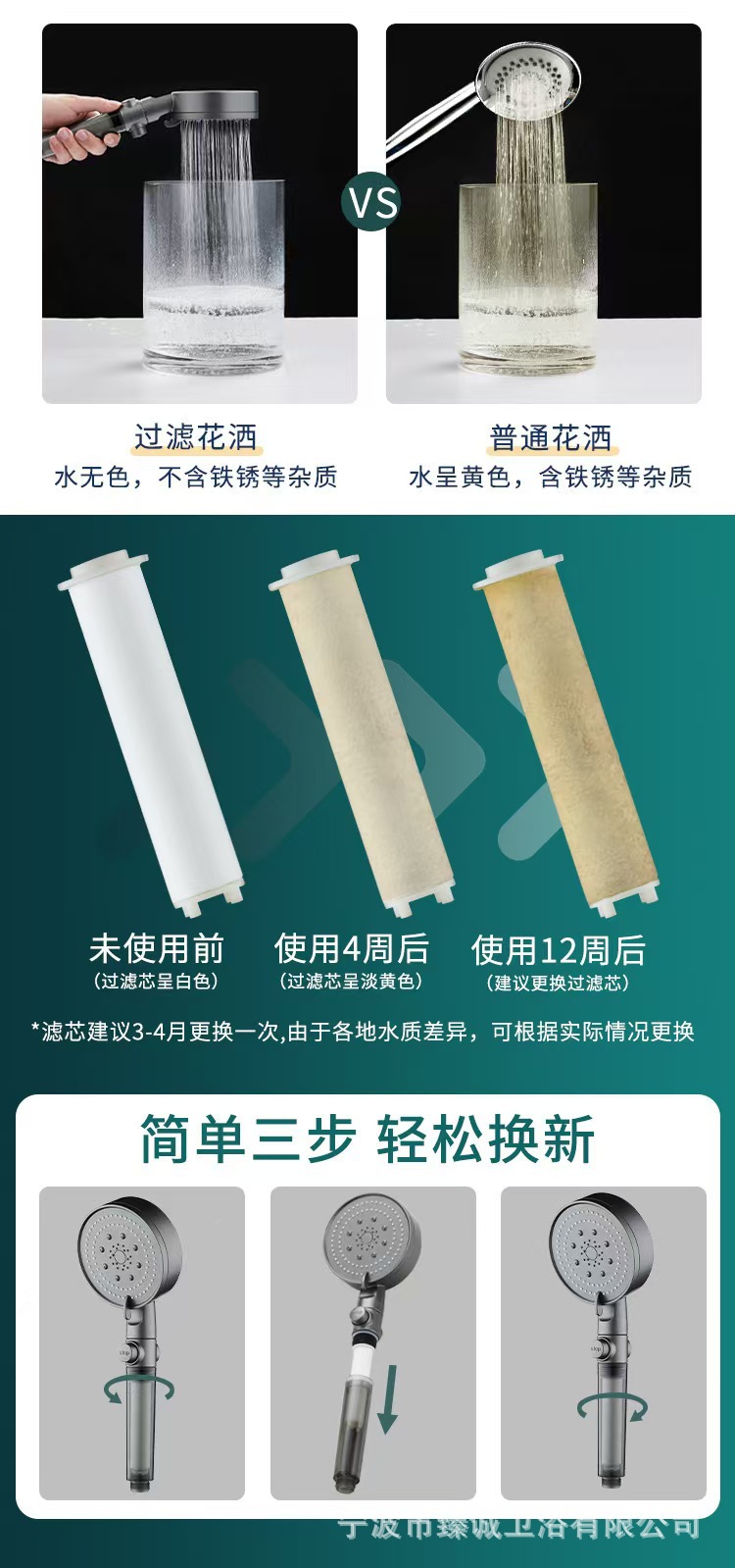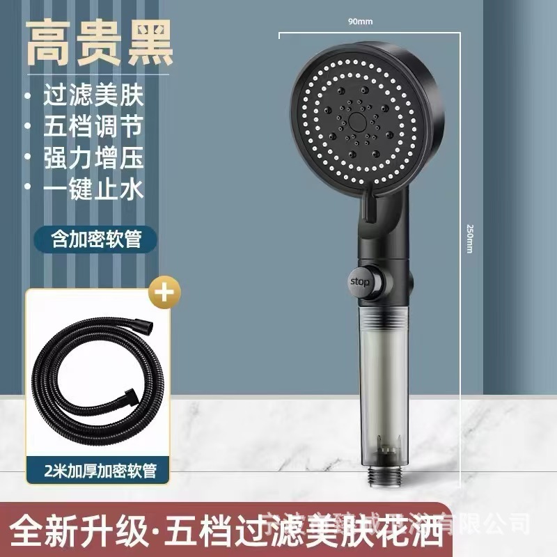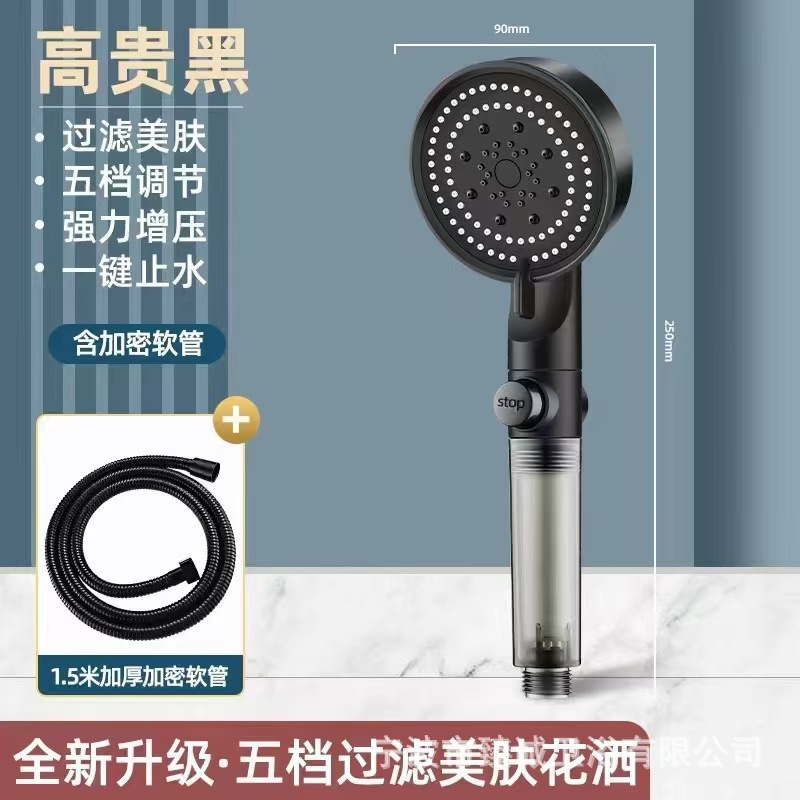 • 하이엔드 필터링 스킨 뷰티 샤워 헤드 [샤워 헤드 + 1.5m 블랙 암호화 두꺼운 샤워 파이프]
