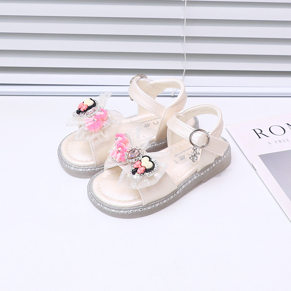 2025 여름 소녀 샌들 아기 아기 모조 다이아몬드 활 공주 샌들 어린이 신발 3070