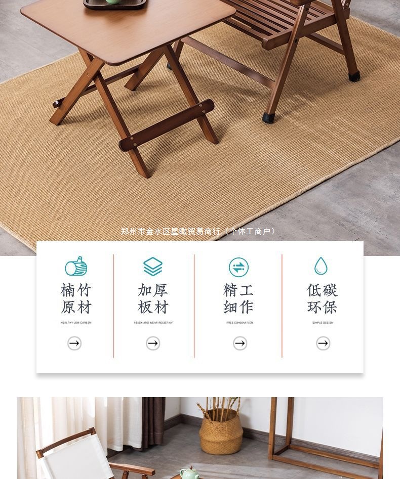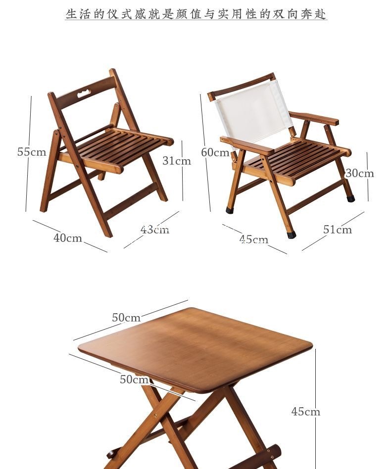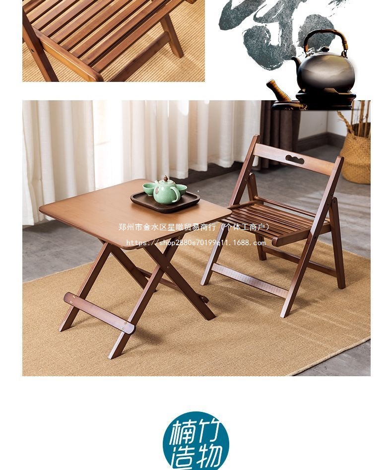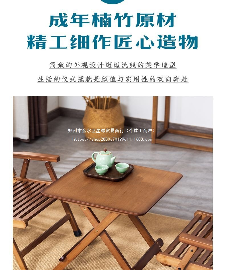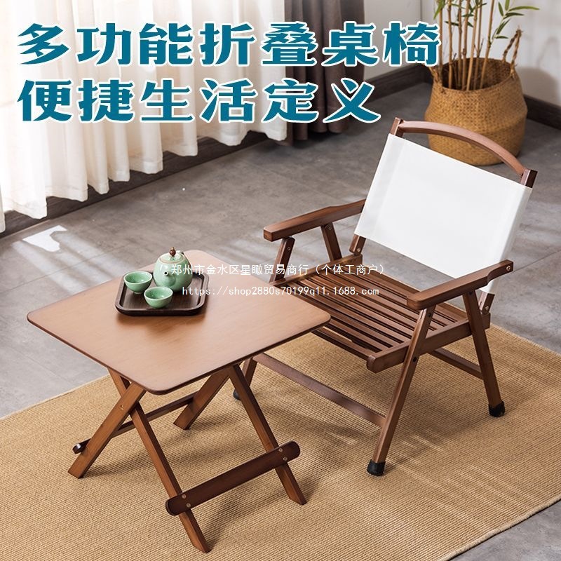 소형 아파트 대나무 다기능 접이식 테이블과 의자, 가정용 소형 식탁, 휴대용 간단한 보관 야외 캠핑 의자스토어 가기