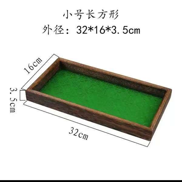 유리 접시 단단한 나무 트레이 커피 트레이 홈 케이크 트레이 장식 트레이 복고풍 녹색 양각 베고니아 꽃 유리 트레이