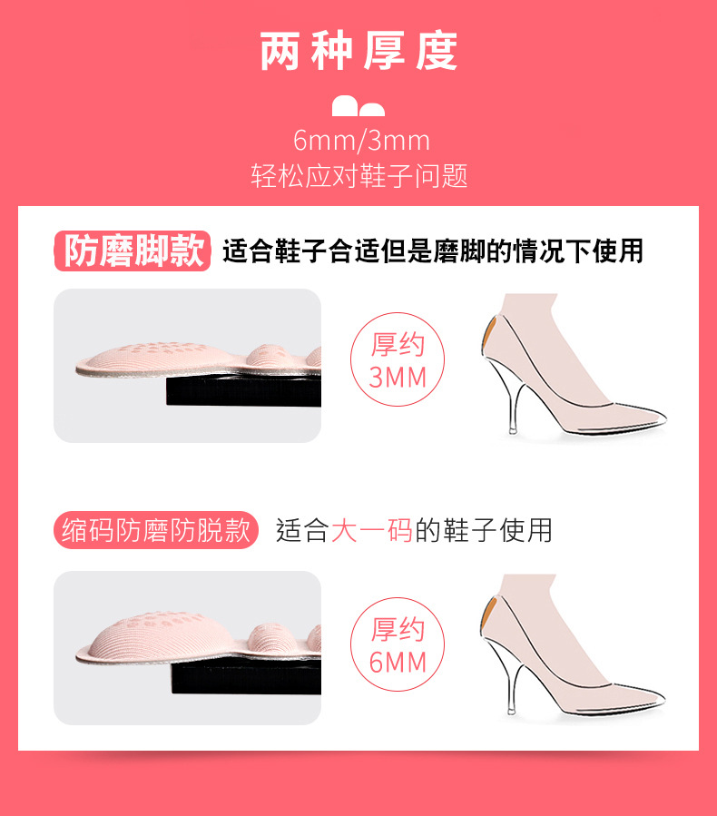 제조업체 안티 드롭 두꺼운 힐 스티커 안티 웨어 하이힐 스티커 하프 사이즈 패드 여성의 조정 가능한 신발 사이즈 신발 큰 변화 작은 유물스토어 가기