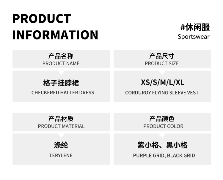 • 퍼플 체크 무늬 홀터넥 스커트
