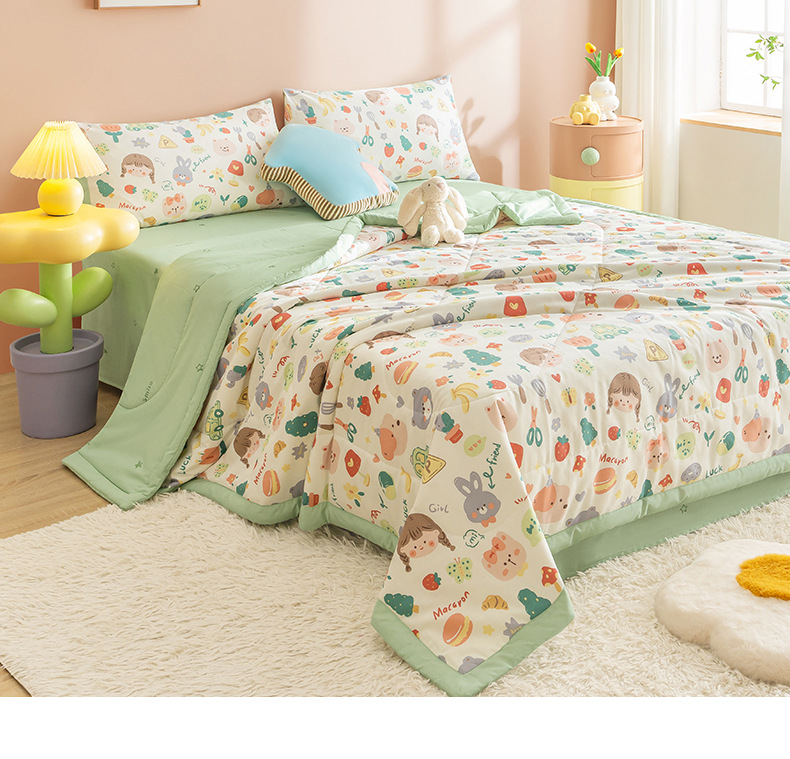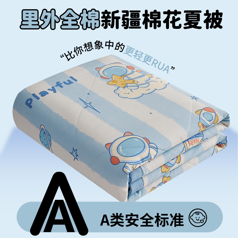 A급 순면 여름 이불, 내부와 외부 모두 순면으로 제작, 신장면, 어린이용 만화 캐릭터 에어컨 이불, 세탁기 사용 가능, 피부 친화적 여름 이불