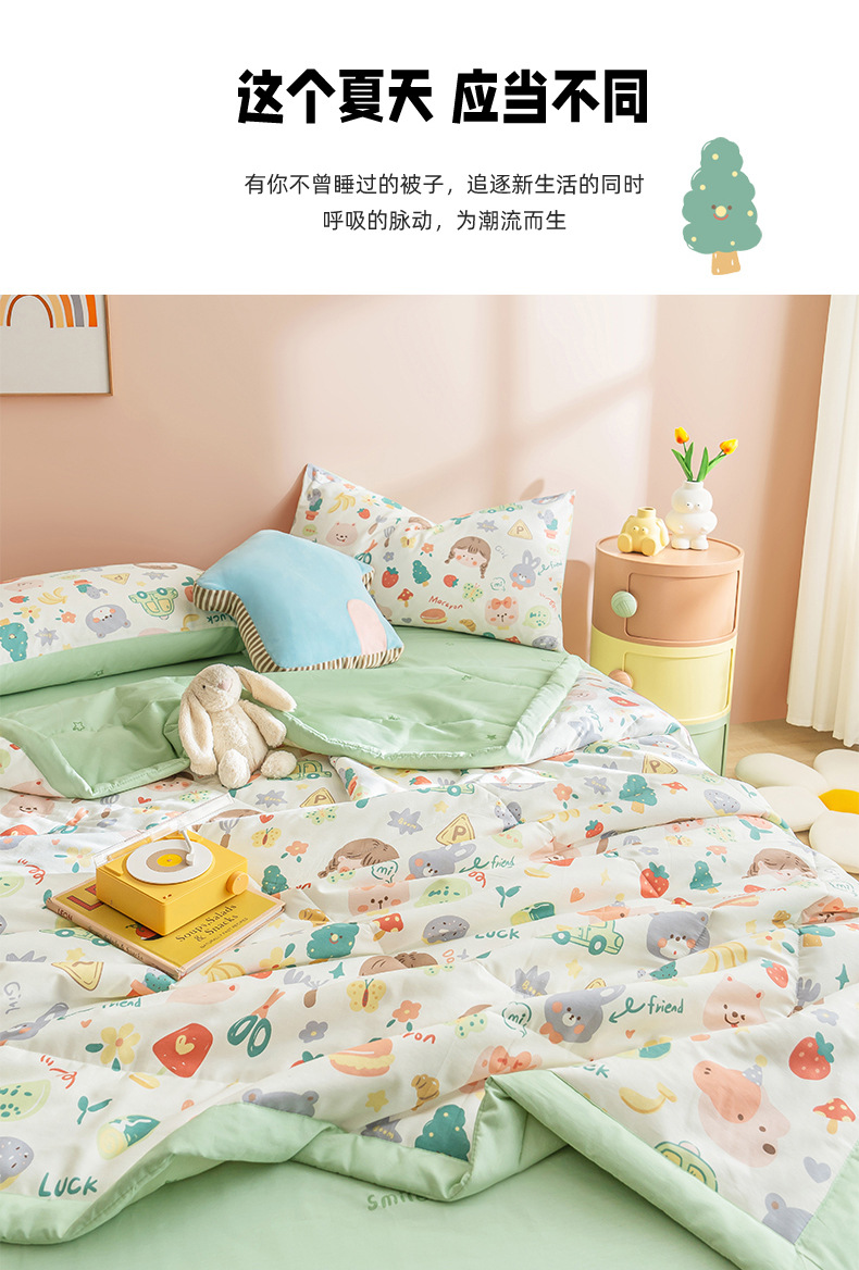 A급 순면 여름 이불, 내부와 외부 모두 순면으로 제작, 신장면, 어린이용 만화 캐릭터 에어컨 이불, 세탁기 사용 가능, 피부 친화적 여름 이불스토어 가기