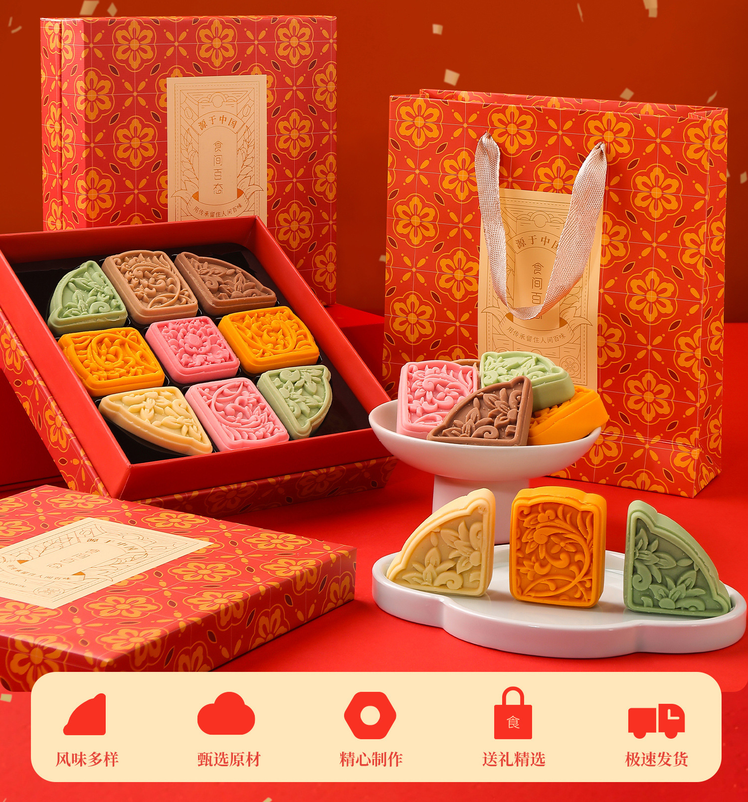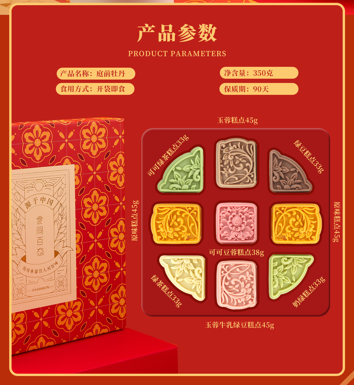 새로운 중국식 과자 녹두 케이크 선물 상자, 항저우 특산품, 절묘한 차 디저트, 어르신들을 위한 중추절 선물
