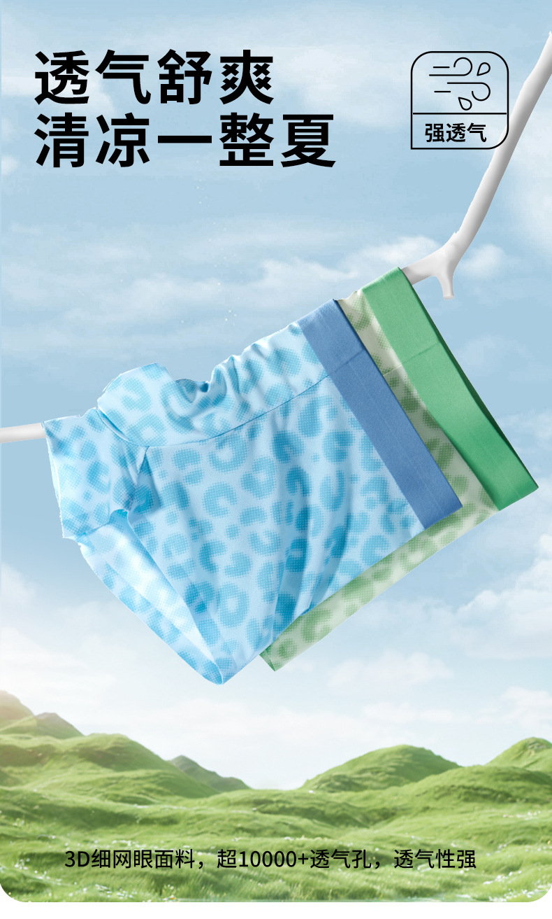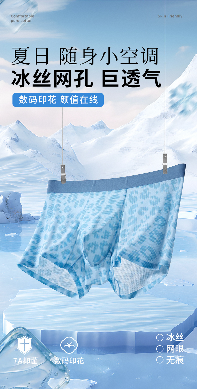 [디지털 프린팅] 초박형 아이스 실크 남성 속옷 통기성 속건 청소년 복서 메쉬 복서
