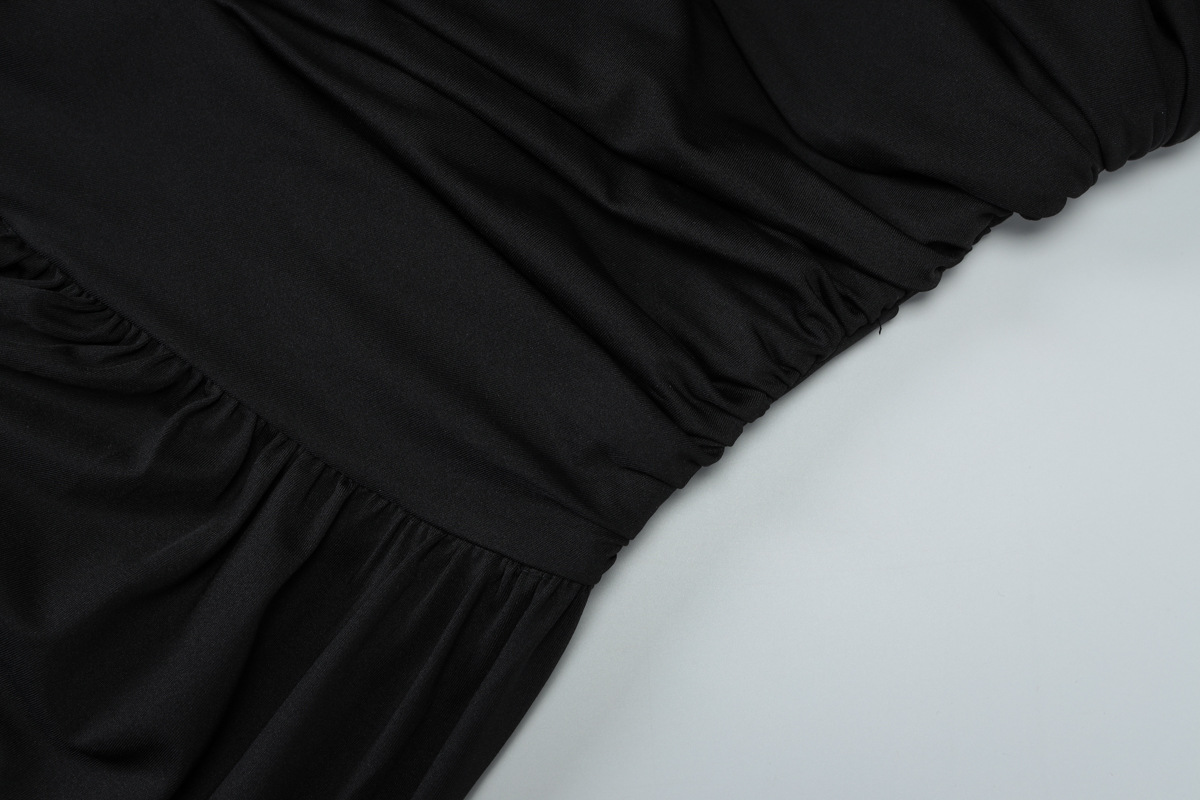 유럽과 미국에서 인기 있는 여성복 2026 봄 신상품 패셔너블하고 섹시한 사선 넥라인 주름 장식 불규칙 솔리드 컬러 원피스 도매