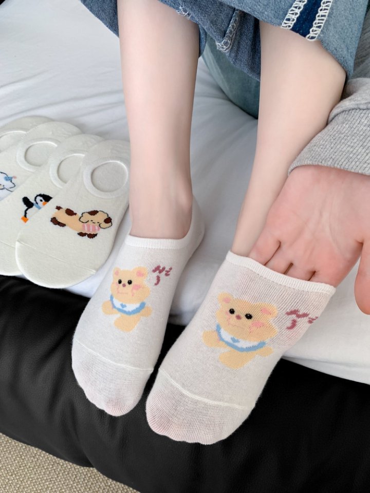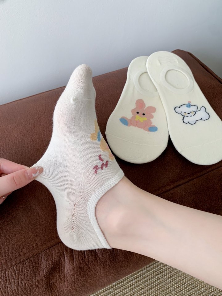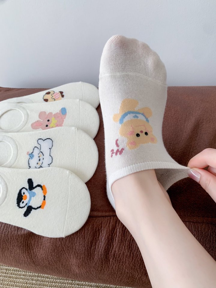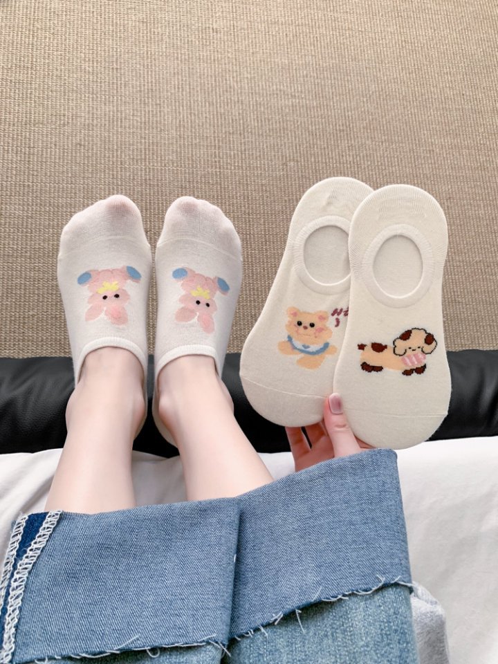 귀여운 만화 양말 여성 보트 양말 면화 양말 여름 얇은 로우 엔드 얕은 입 보이지 않는 양말 미끄럼 방지 힐 양말