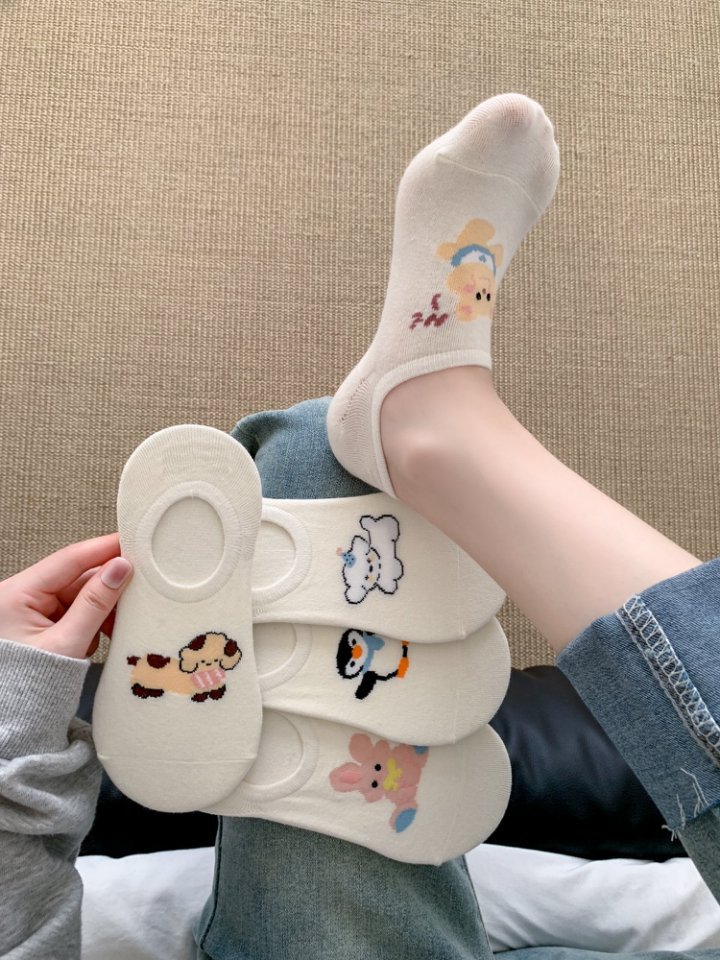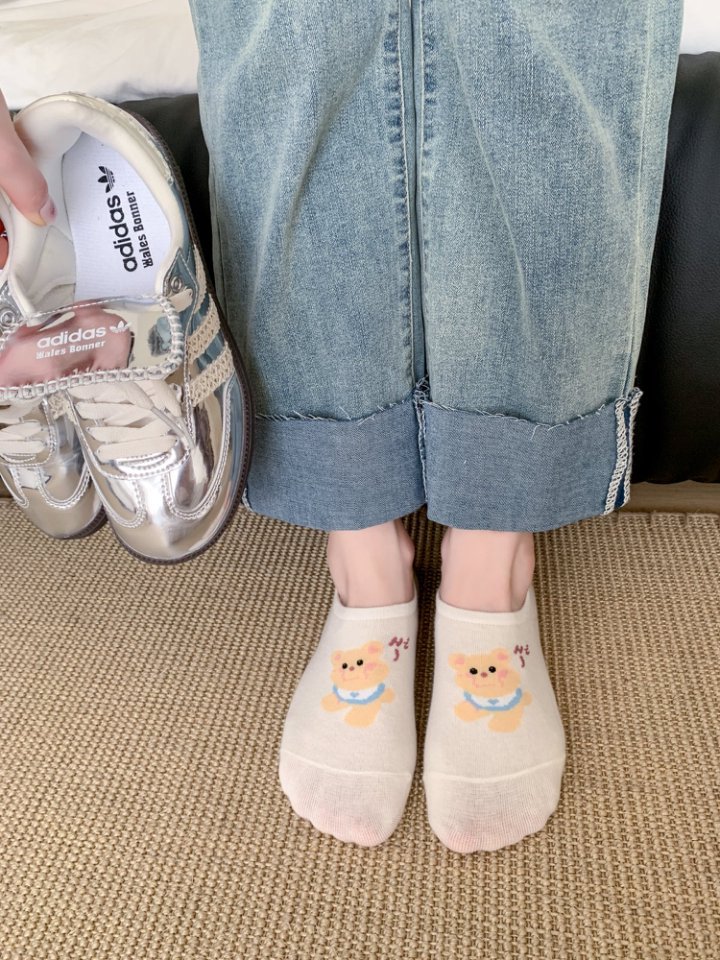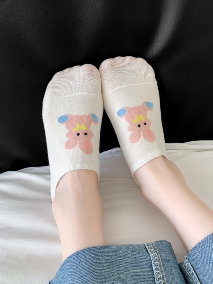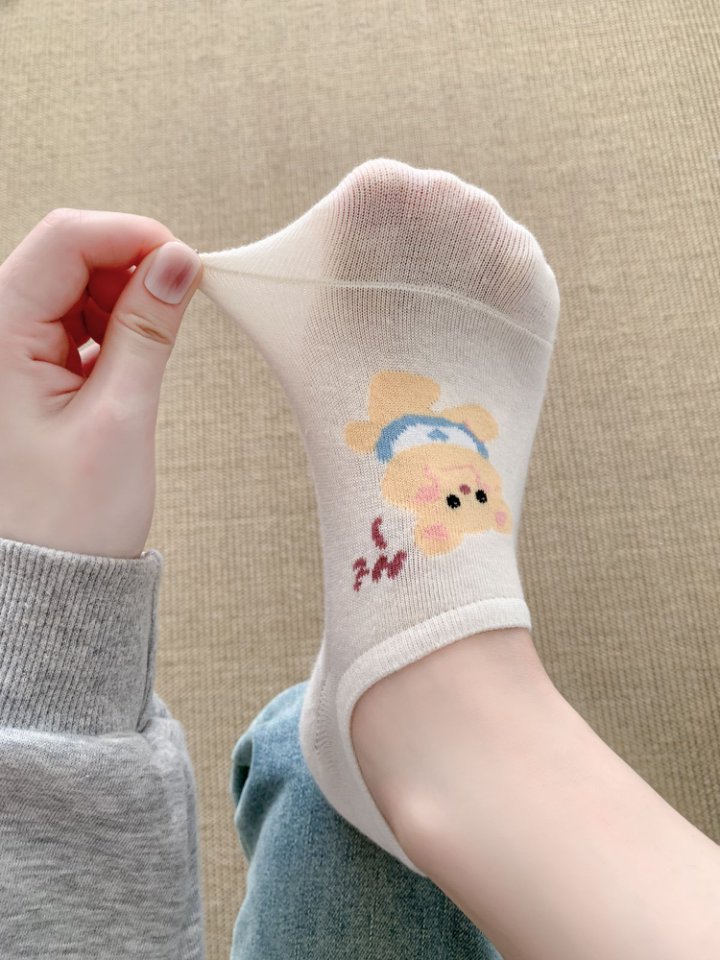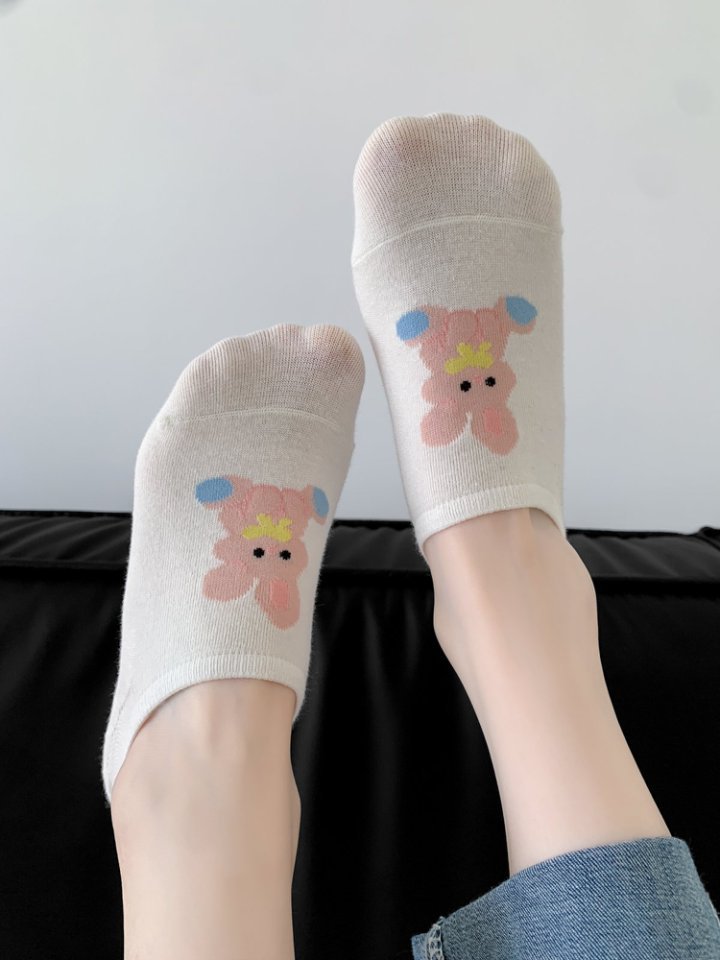 귀여운 만화 양말 여성 보트 양말 면화 양말 여름 얇은 로우 엔드 얕은 입 보이지 않는 양말 미끄럼 방지 힐 양말
