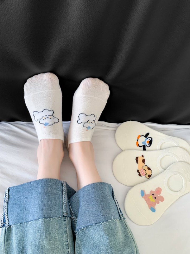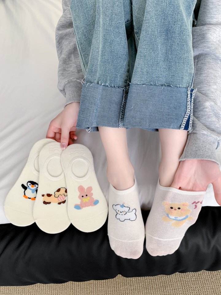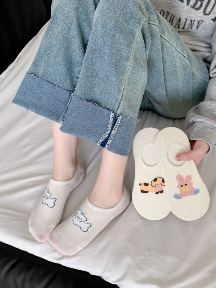 귀여운 만화 양말 여성 보트 양말 면화 양말 여름 얇은 로우 엔드 얕은 입 보이지 않는 양말 미끄럼 방지 힐 양말스토어 가기