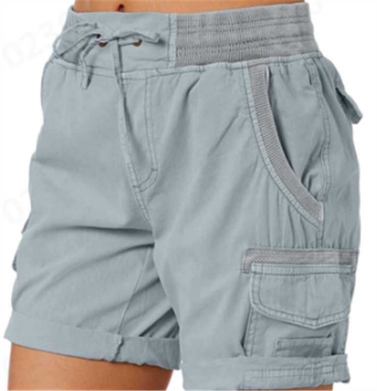 2025년 특별 제작 하이웨이스트 여성 작업복 바지 캐주얼 바지 면마 반바지 얇은 A라인 루즈핏 포켓 하이웨이스트 슬림핏
