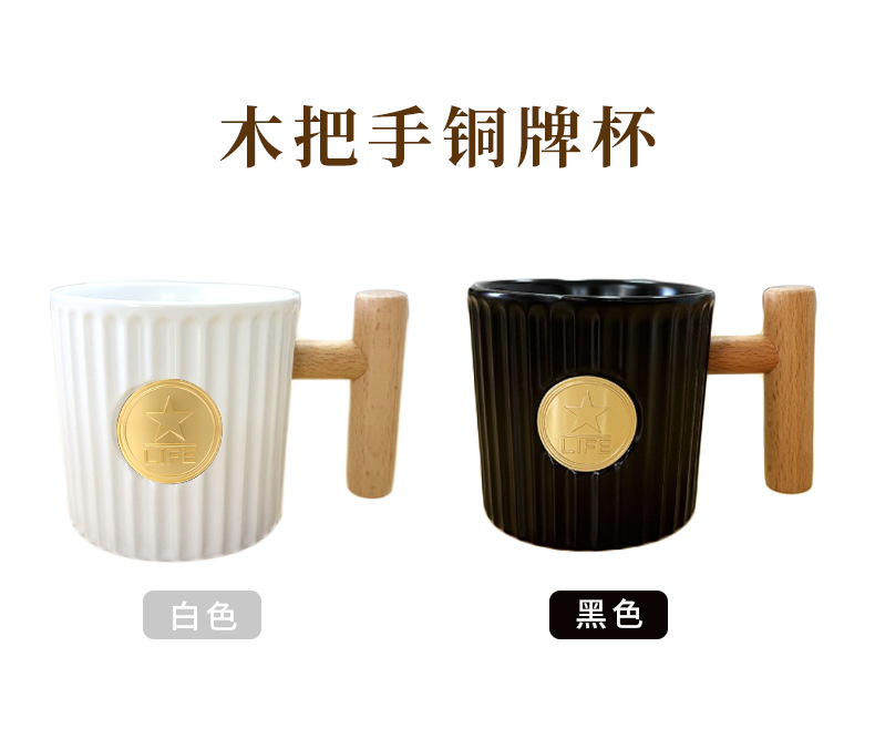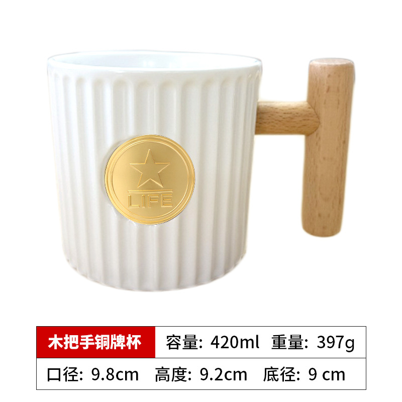 • 흰색 나무 손잡이가 있는 수직 동메달 컵