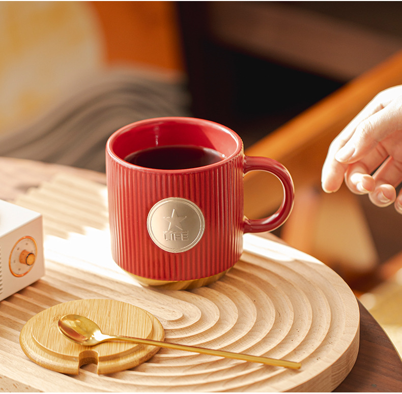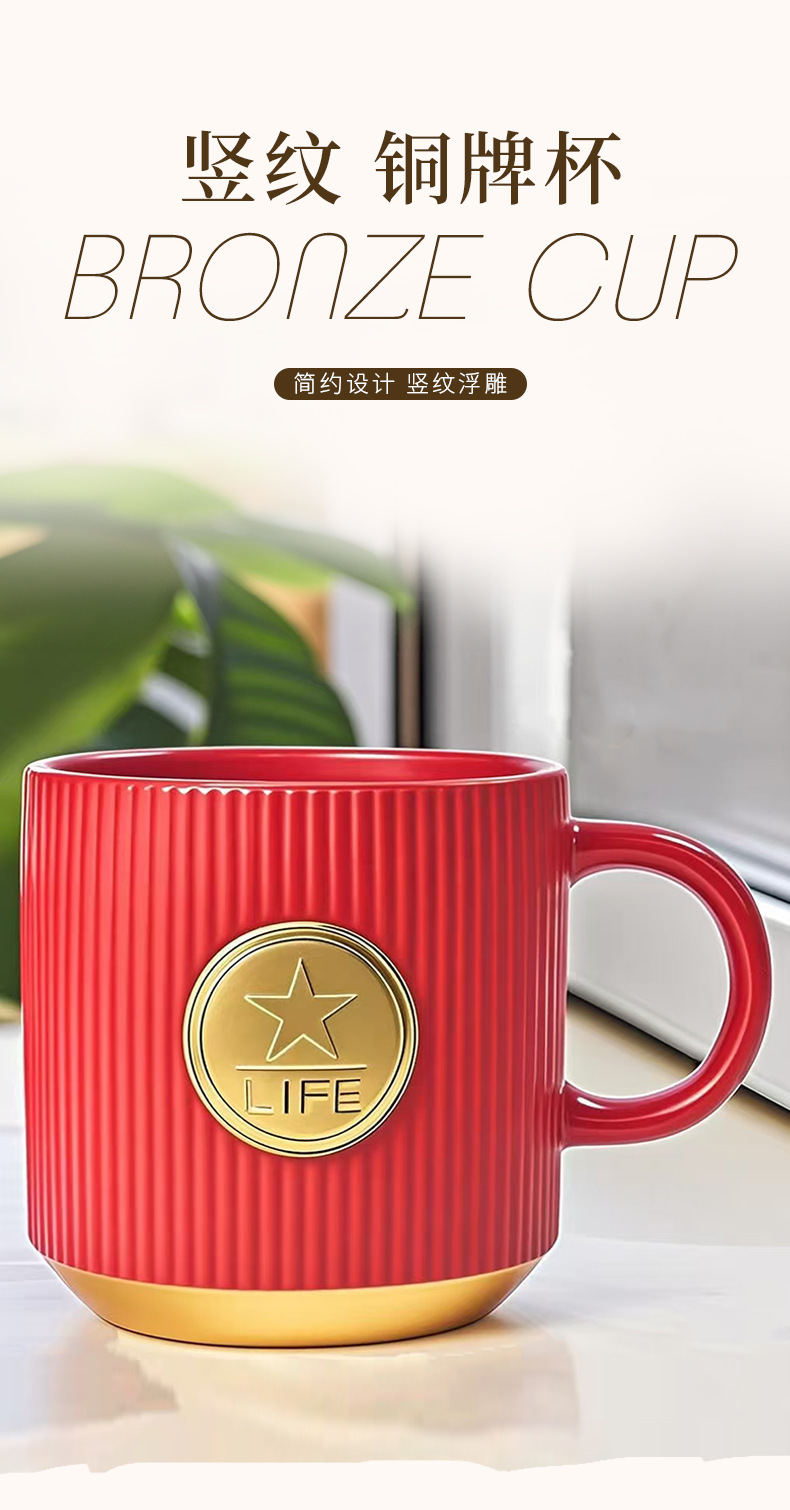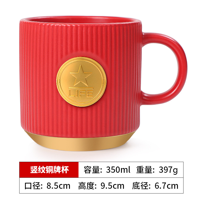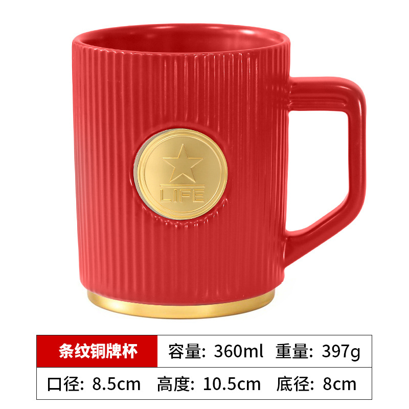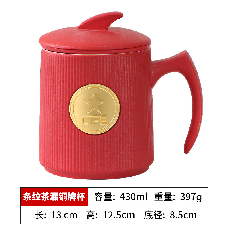 • 빨간색 세로무늬 사무용 동메달 컵(차 배수구 포함)